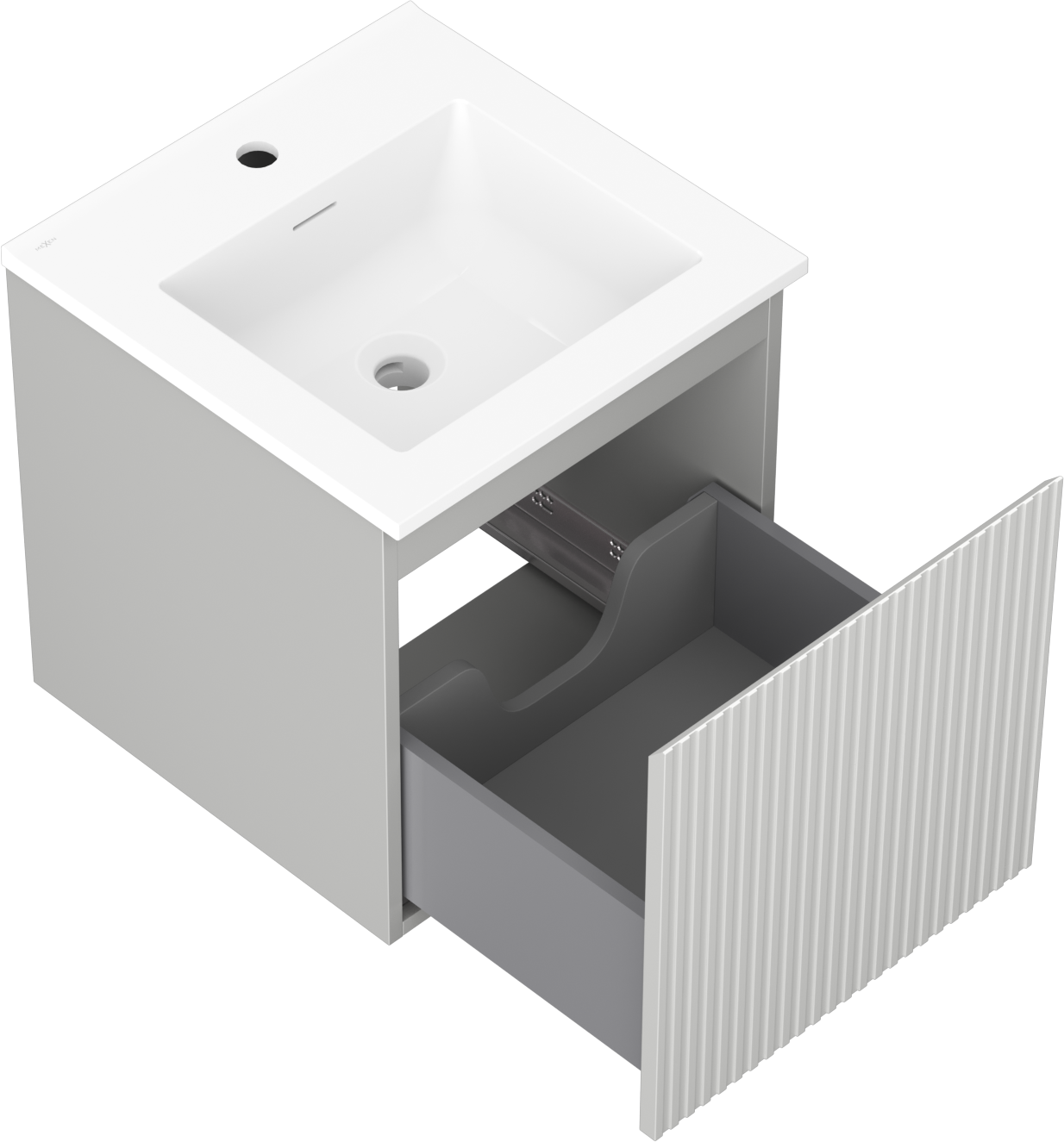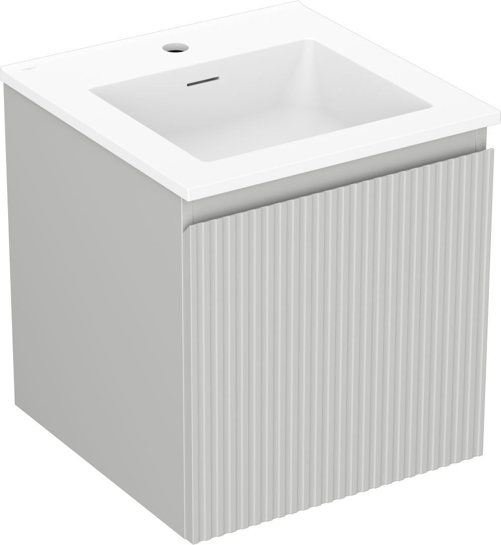 Mexen Rivel Badezimmerschrank 45 cm mit Waschbecken Otis, 1 Schublade, gerillt, grau matt/weiß matt - 91A20-04547-1-BF62-W18M01