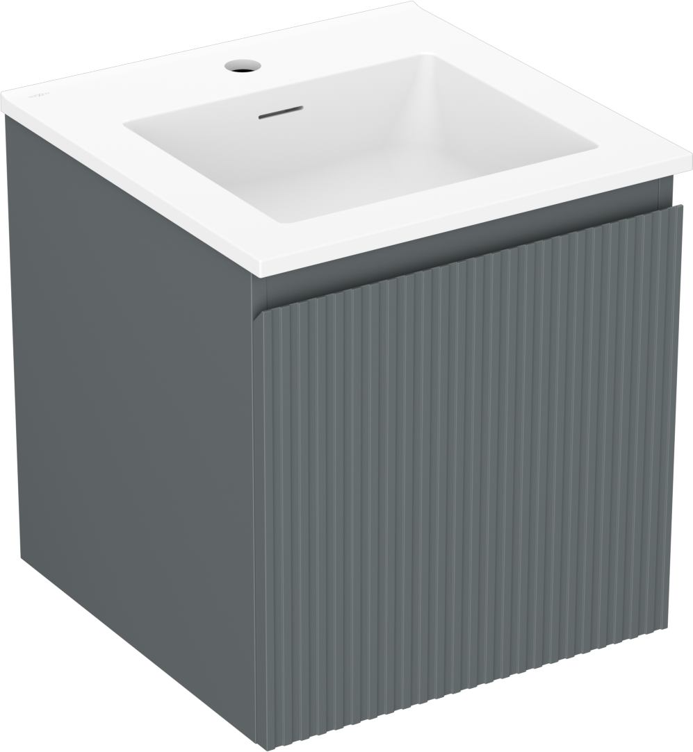 Mexen Rivel Badezimmerschrank 45 cm mit Waschbecken Otis, 1 Schublade, geriffelt, Graphit matt/Weiß matt
