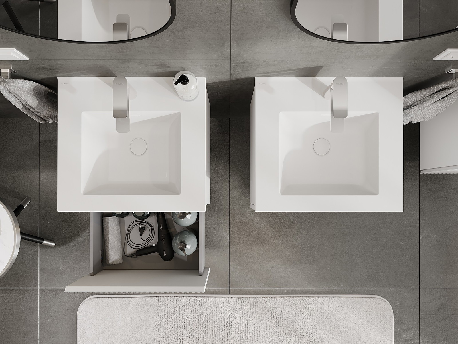 Mexen Rivel Badezimmerschrank 50 cm mit Waschbecken Otis, 1 Schublade, geriffelt, weiß matt - 91A20-05047-1-BF01-W18M01