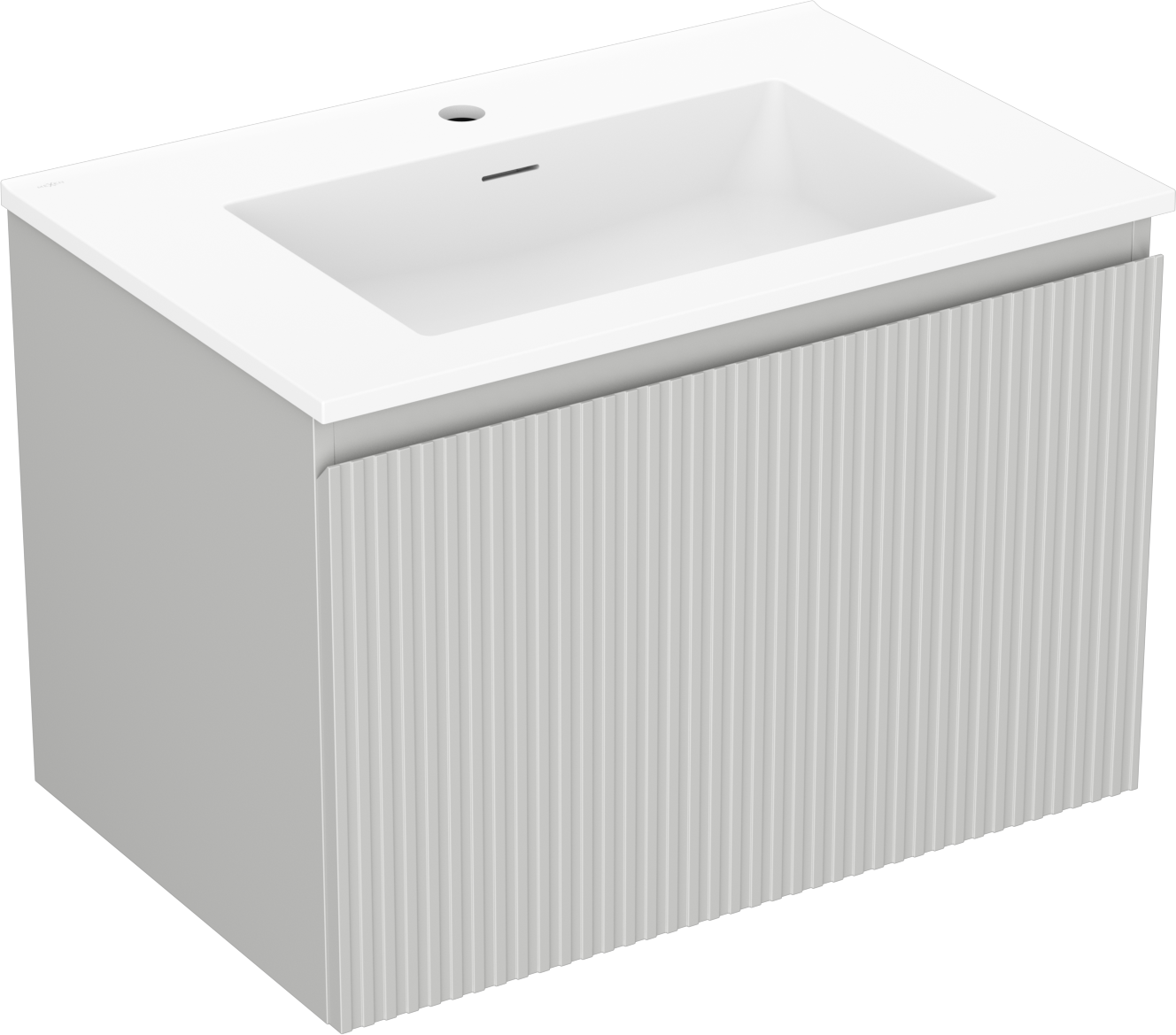 Mexen Rivel Badezimmerschrank 70 cm mit Waschbecken Otis, 1 Schublade, geriffelt, grau matt/weiß matt