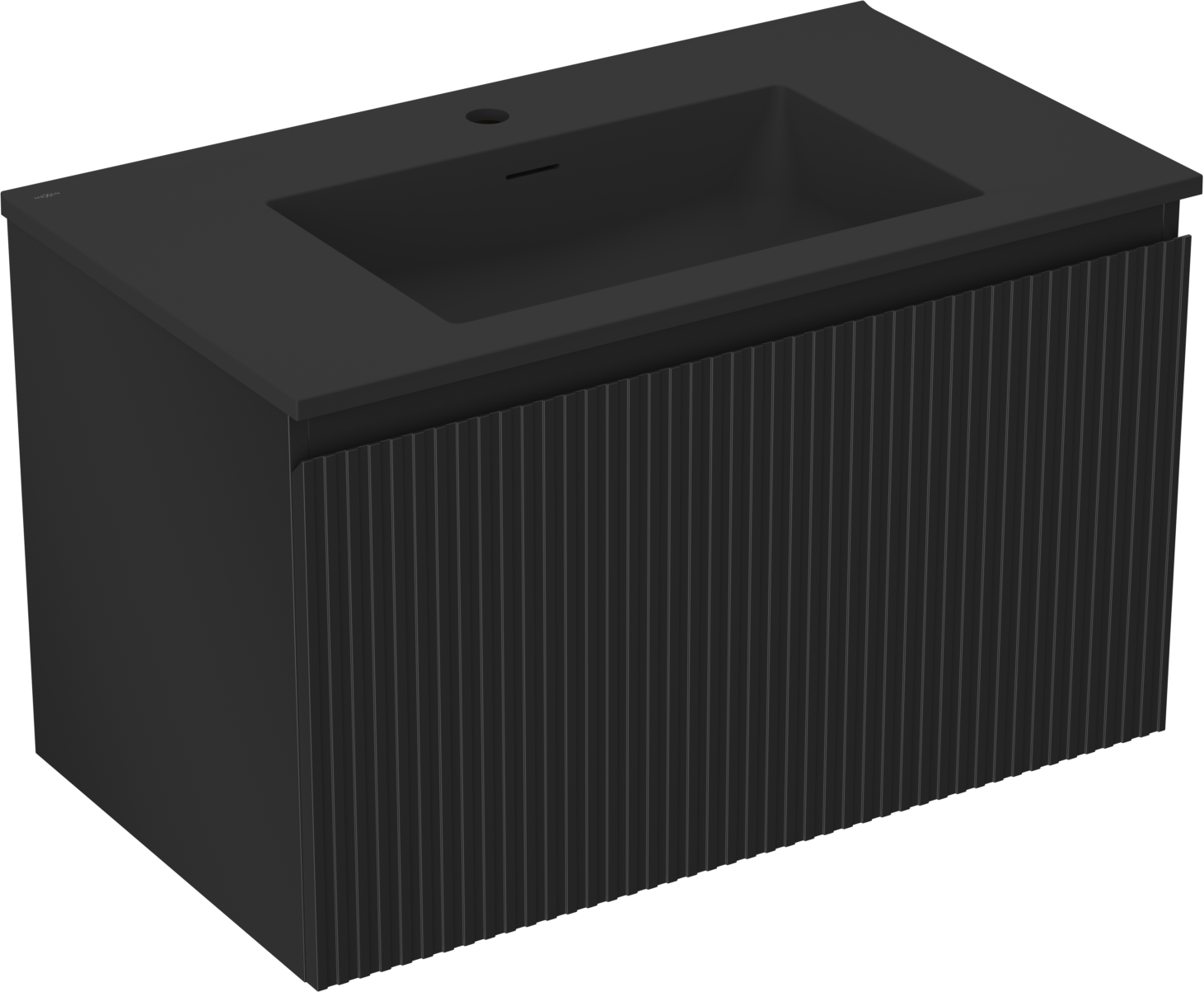 Mexen Rivel Badezimmerschrank 80 cm mit Waschbecken Otis, 1 Schublade, geriffelt, schwarz matt - 91A20-08047-1-BF71-W18M71