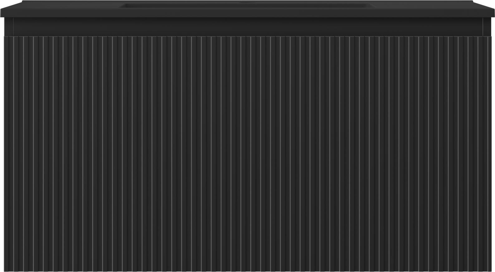 Mexen Rivel Badezimmerschrank 90 cm mit Waschbecken Otis, 1 Schublade, gerillt, schwarz matt - 91A20-09047-1-BF71-W18M71