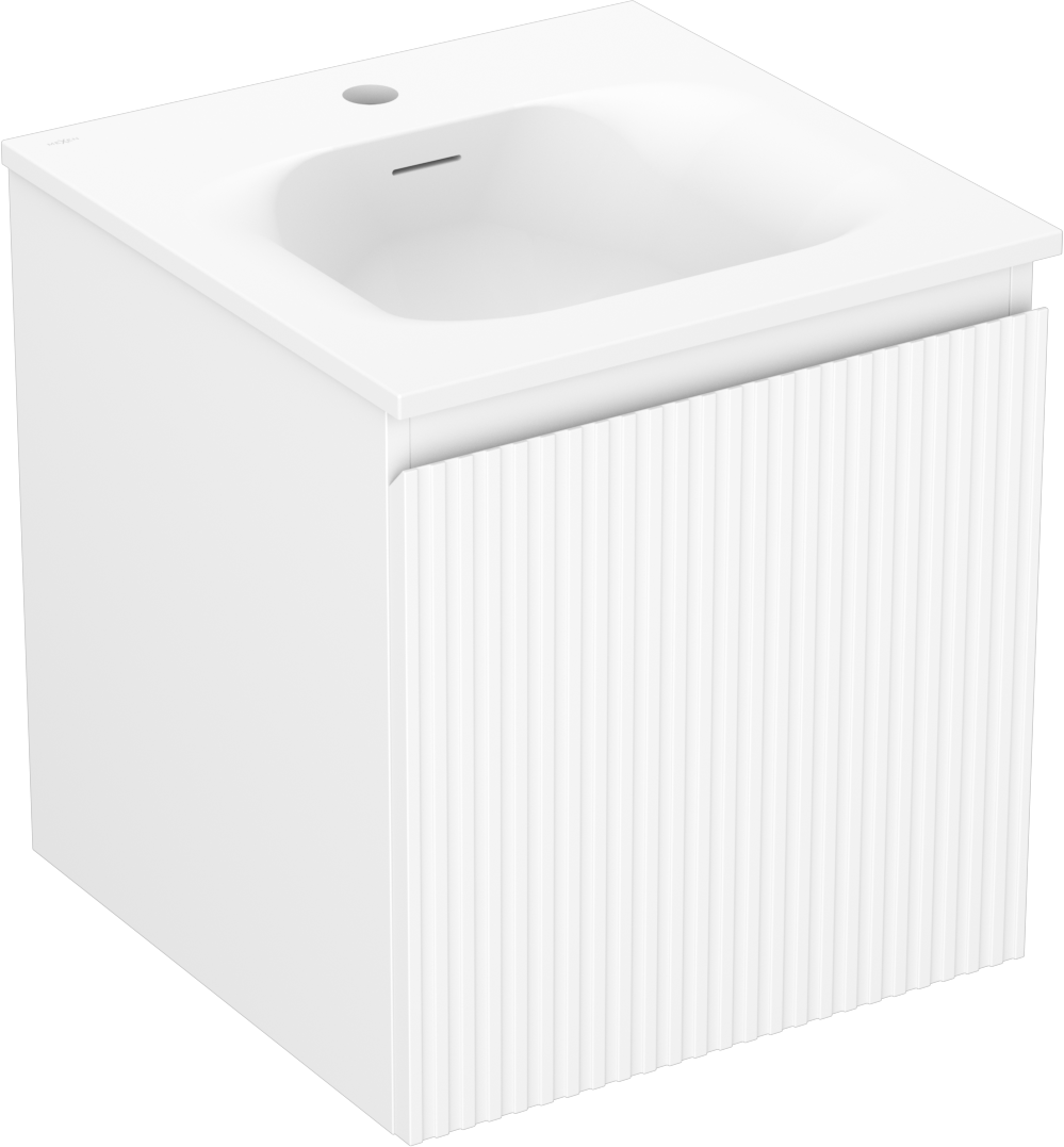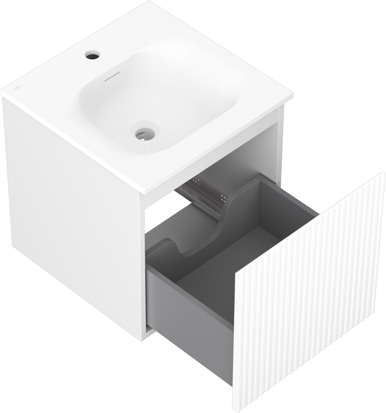 Mexen Rivel Badezimmerschrank 45 cm mit Waschbecken Vela, 1 Schublade, gerillt, weiß matt - 91A20-04547-1-BF01-W23M01