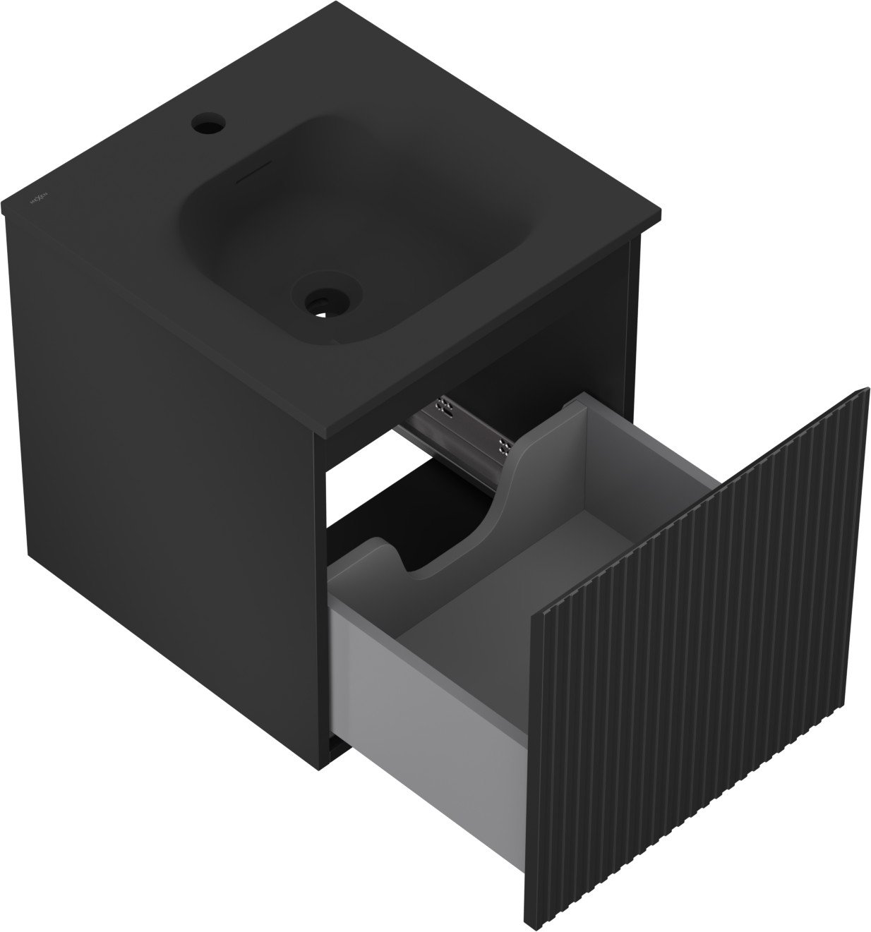 Der Ausschnitt in der Schublade ist so gestaltet, dass er den Siphon aufnehmen kann, der für Waschbeckeninstallationen erforderlich ist. Dadurch kann das Möbelstück voll funktionsfähig montiert werden, ohne auf den Platz in der Schublade zugunsten der Installation verzichten zu müssen.