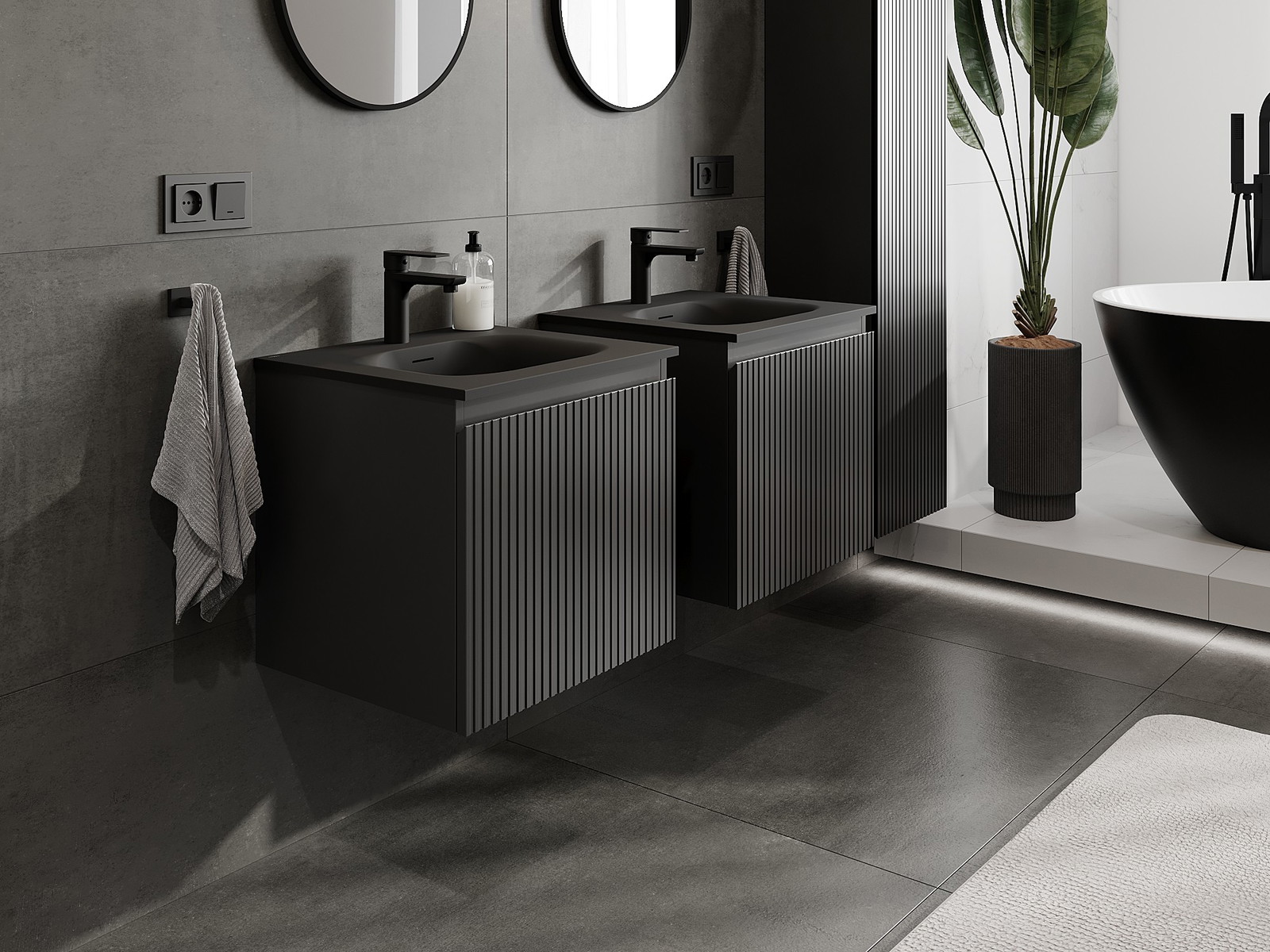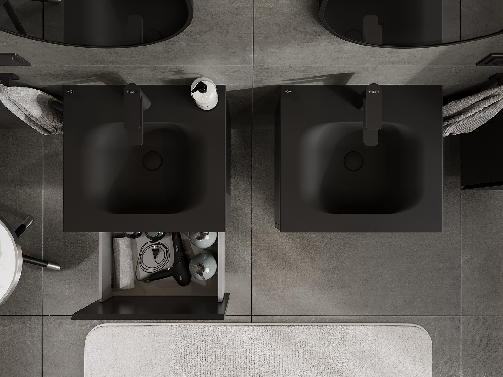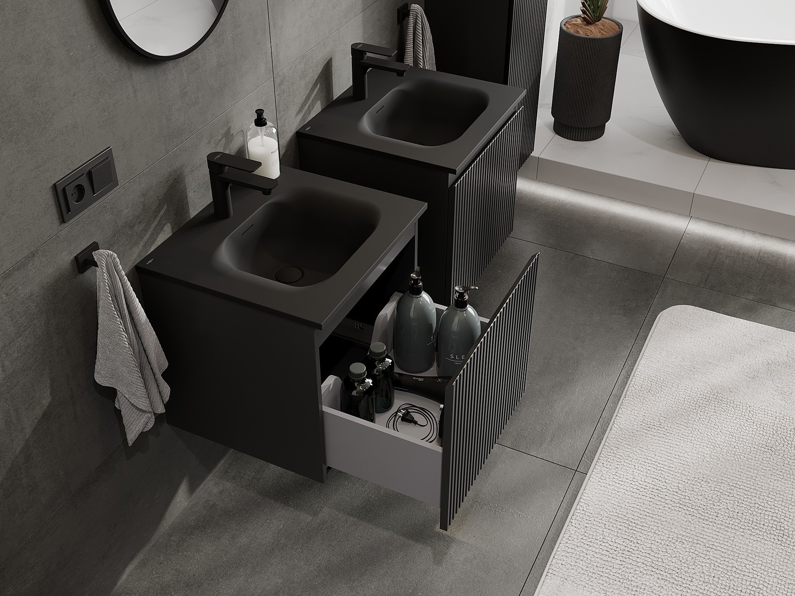 Mexen Rivel 50 cm Badezimmerschrank mit Vela Waschtisch, 1 Schublade, geriffelt, Schwarz Matt - 91A20-05047-1-BF71-W23M71