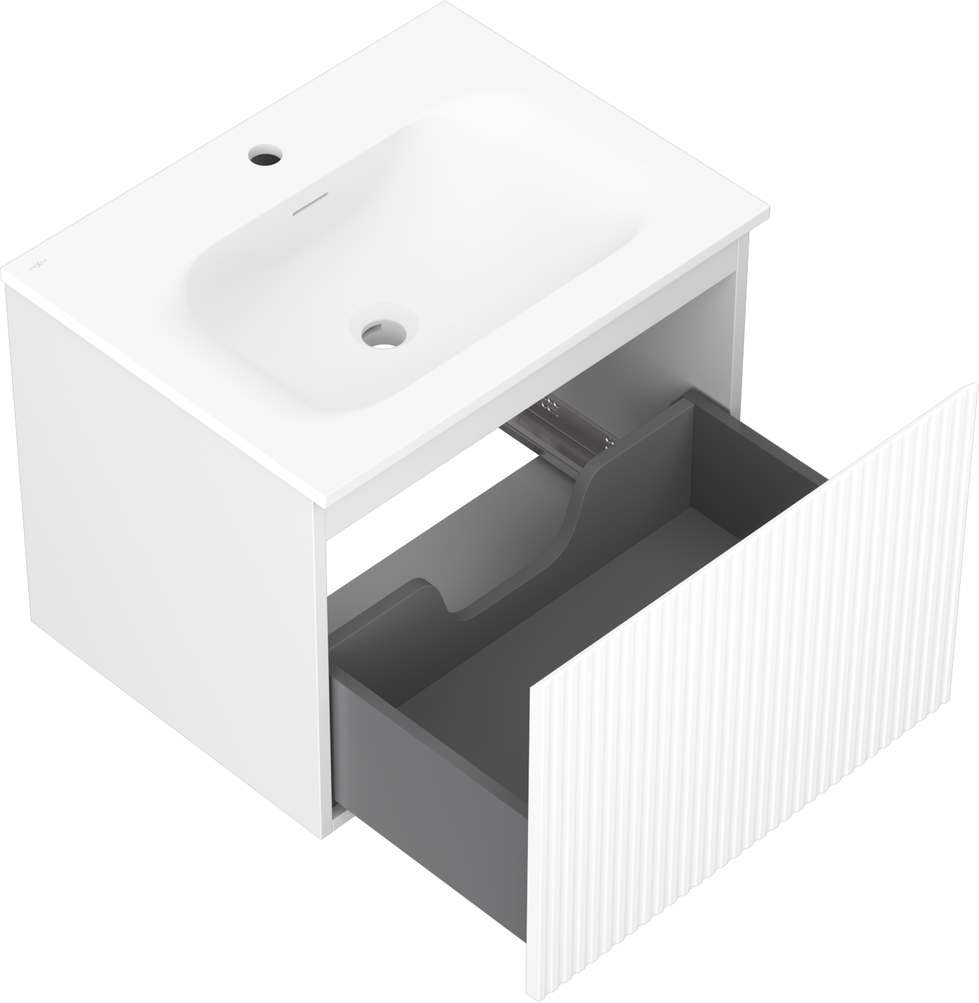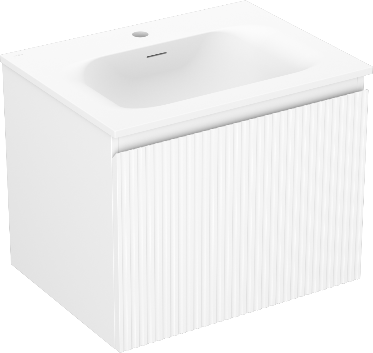 Mexen Rivel Badezimmerunterschrank 60 cm mit Waschbecken Vela, 1 Schublade, geriffelt, weiß matt - 91A20-06047-1-BF01-W23M01