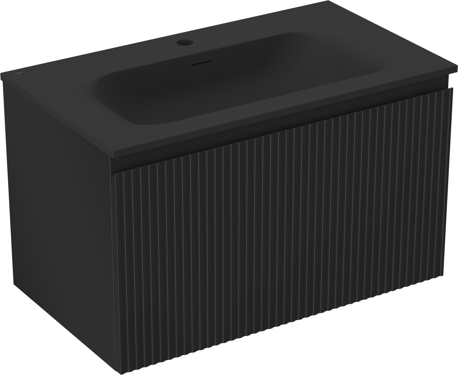 Mexen Rivel Badezimmerschrank 80 cm mit Waschbecken Vela, 1 Schublade, gefräst, schwarz matt - 91A20-08047-1-BF71-W23M71