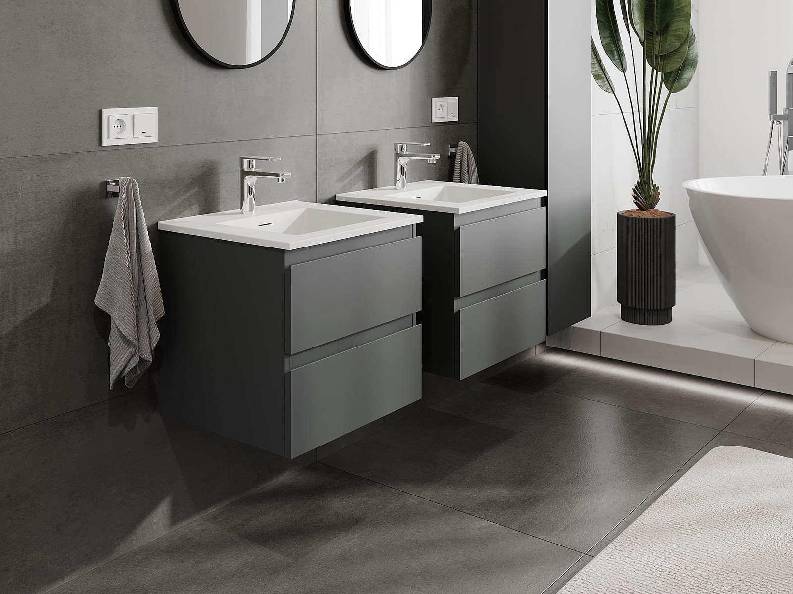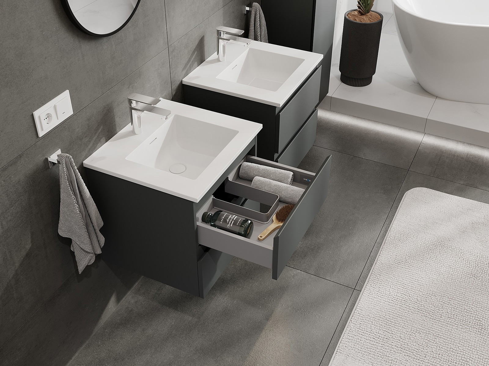 Mexen Orio Badezimmerschrank 50 cm mit Waschbecken Otis, 2 Schubladen, grafit matt/weiß matt - 91A10-05047-2-BFF66-W18M01