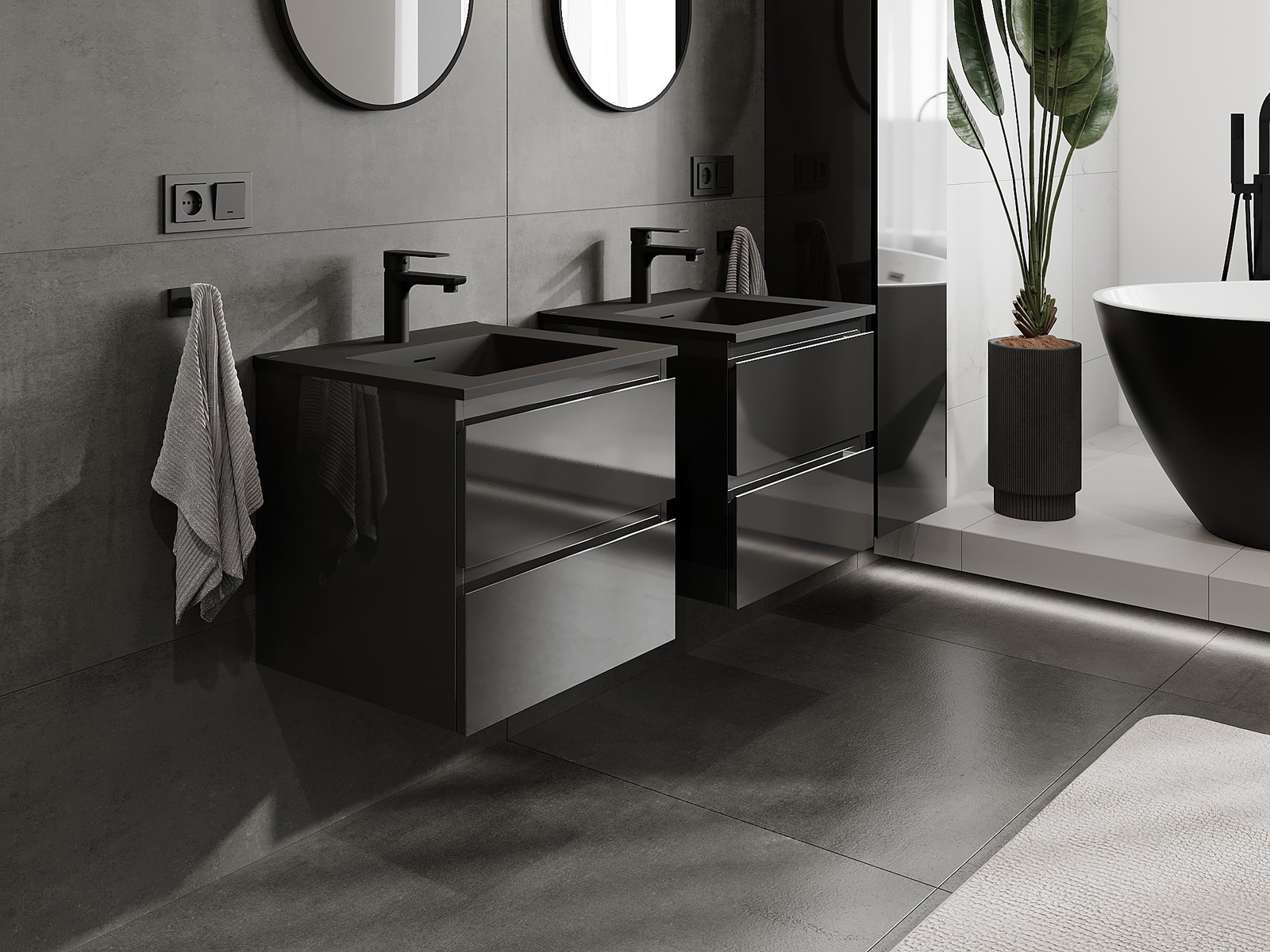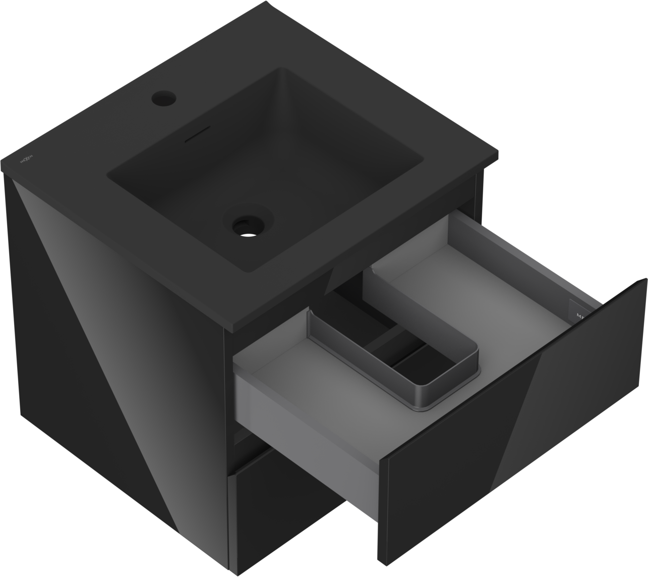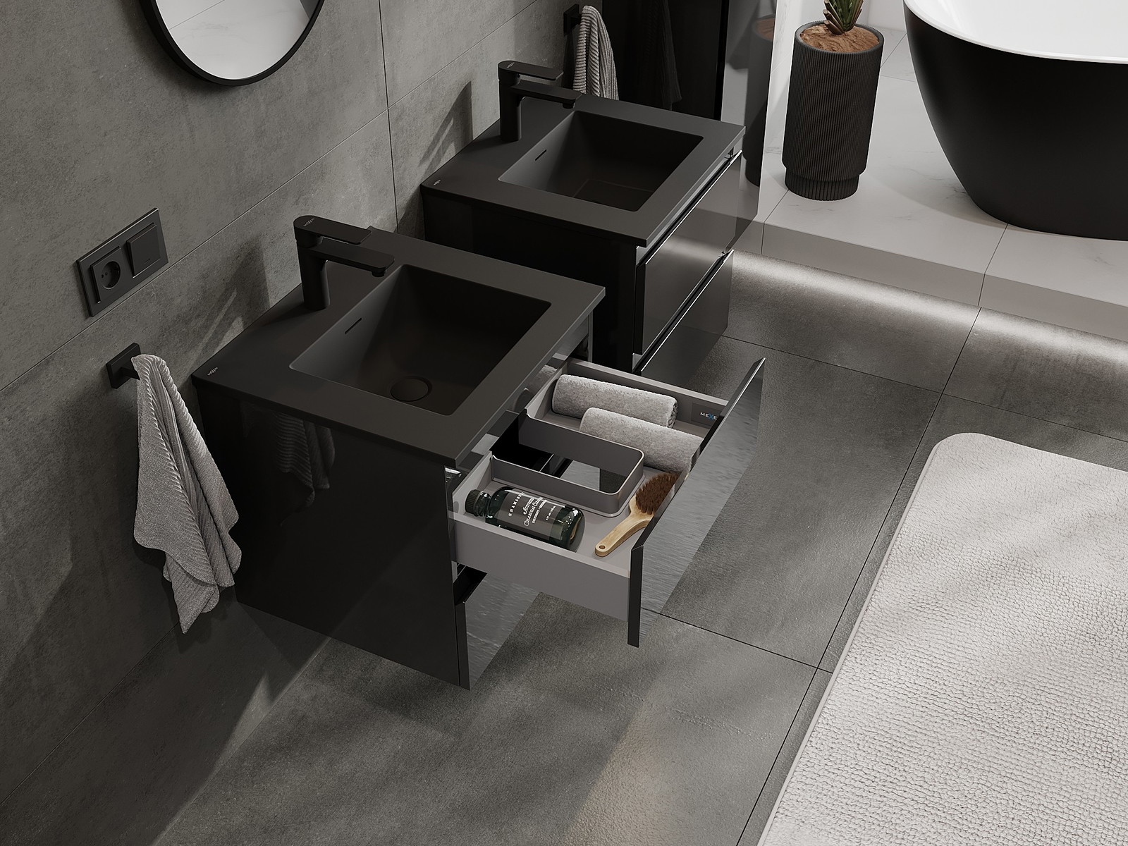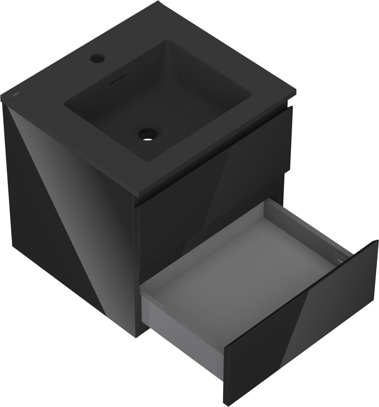 Mexen Orio Badezimmerschrank 50 cm mit Waschbecken Otis, 2 Schubladen, schwarz glänzend/schwarz matt