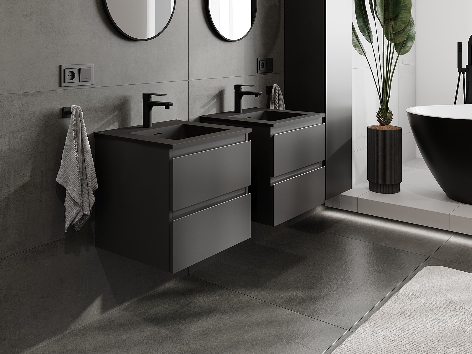 Unsere modularen Badezimmermöbel können in verschiedenen Farbkonfigurationen miteinander kombiniert werden, wodurch eine vollständige Personalisierung ermöglicht wird. Man kann sowohl das Aussehen als auch die Funktionen der einzelnen Elemente auswählen, was es erlaubt, die Möbel an eigene stilistische und funktionale Vorlieben anzupassen.
