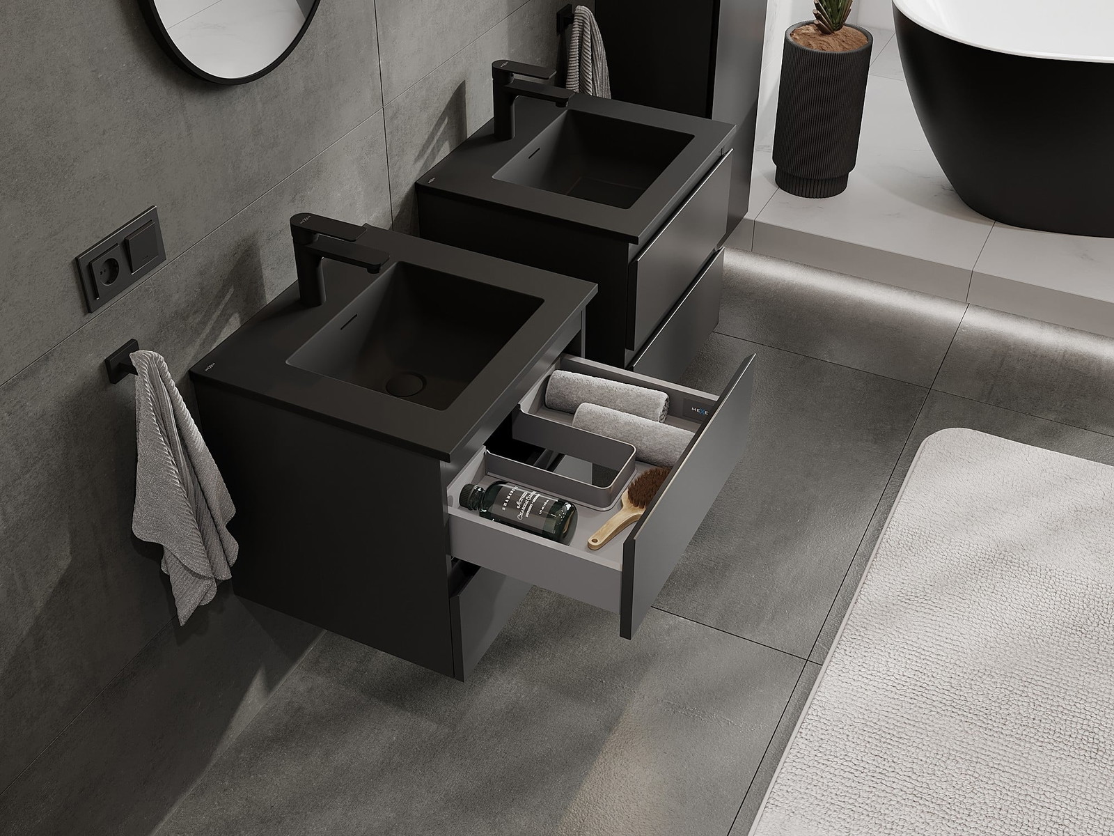 Mexen Orio Badezimmerunterschrank 50 cm mit Waschbecken Otis, 2 Schubladen, schwarz matt - 91A10-05047-2-BFF71-W18M71
