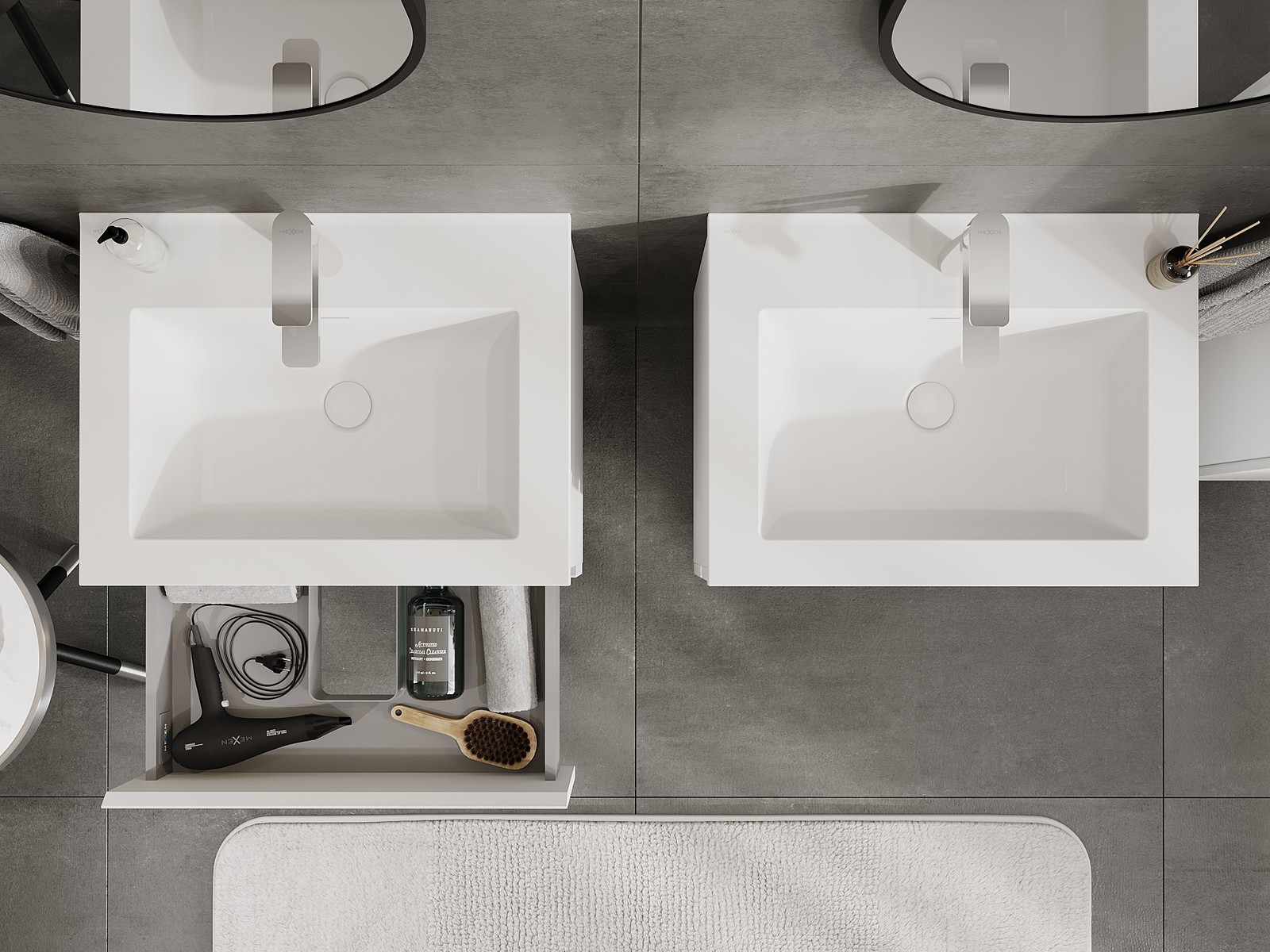 Mexen Orio Badezimmerschrank 60 cm mit Waschbecken Otis, 2 Schubladen, weiß matt - 91A10-06047-2-BFF01-W18M01