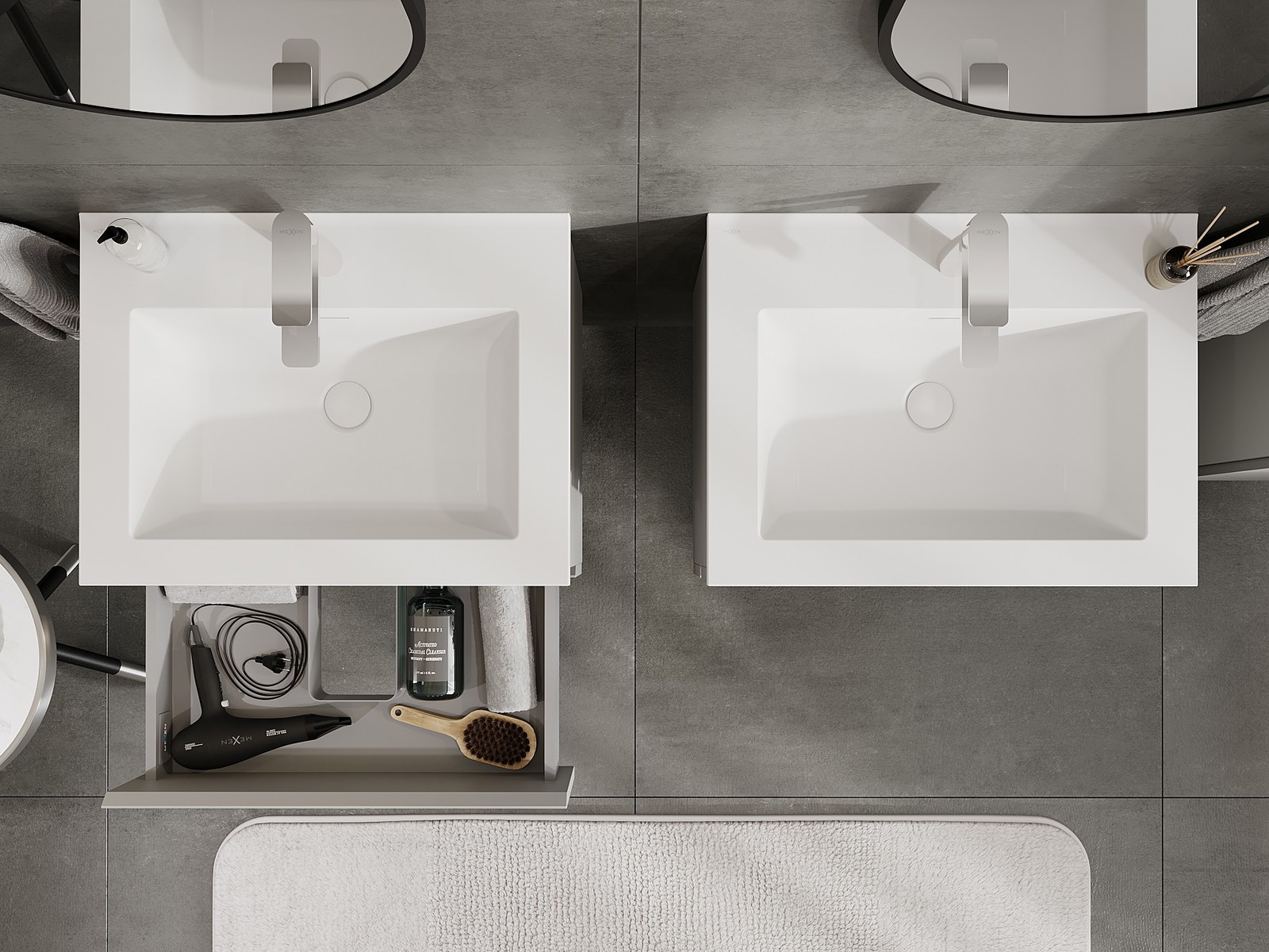 Mexen Orio Badezimmerschrank 60 cm mit Waschbecken Otis, 2 Schubladen, grau matt/weiß matt - 91A10-06047-2-BFF62-W18M01