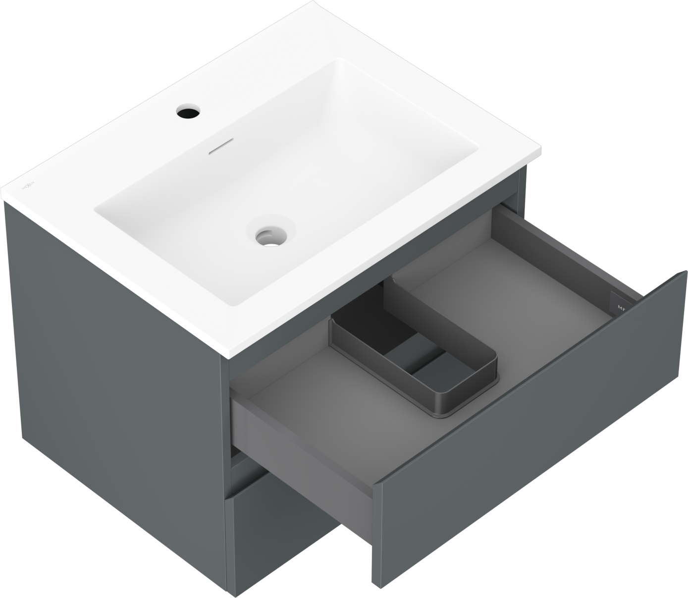 Mexen Orio Badezimmerschrank 60 cm mit Waschbecken Otis, 2 Schubladen, Graphit matt/weiß matt - 91A10-06047-2-BFF66-W18M01