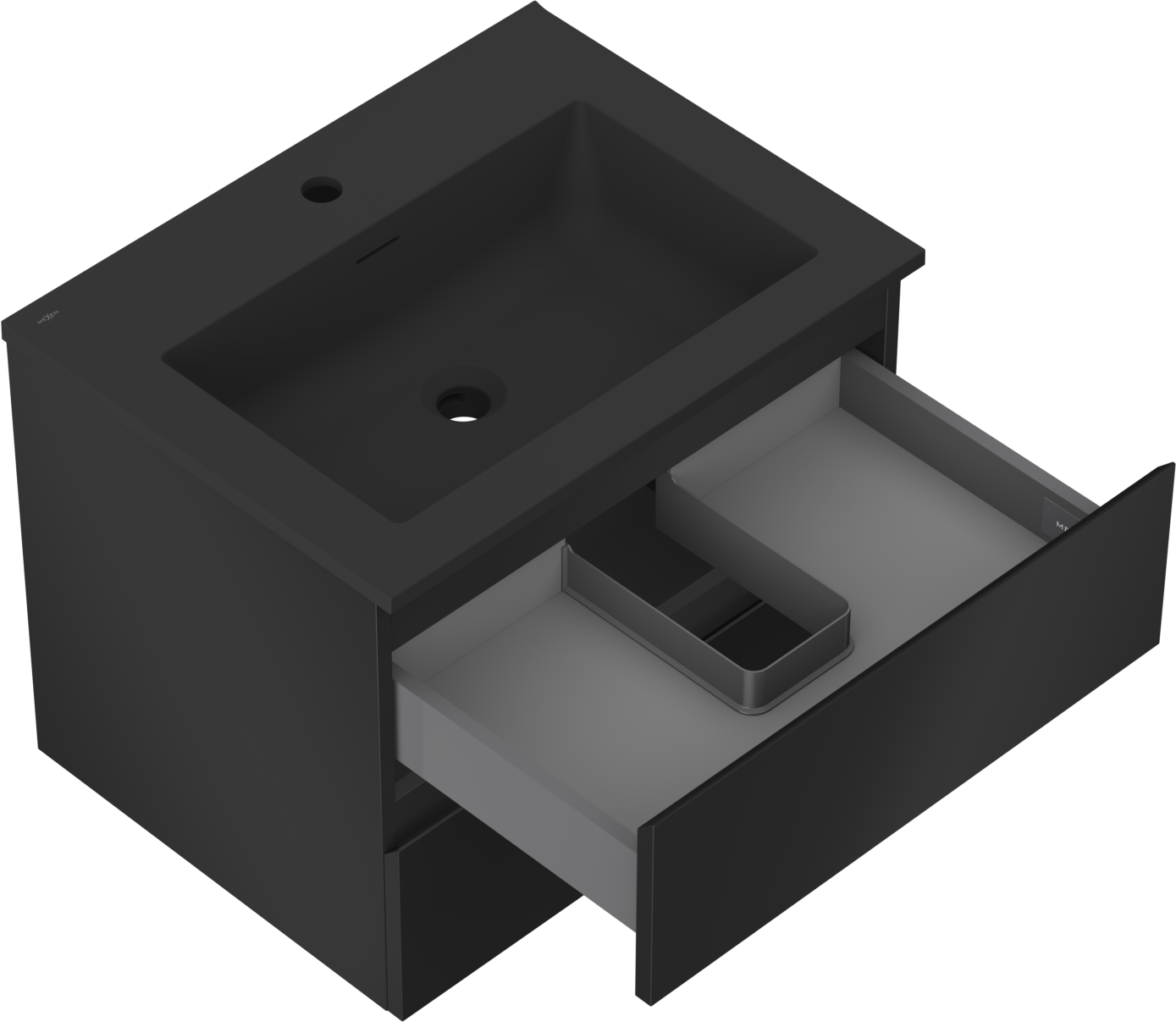 Mexen Orio Badezimmerschrank 60 cm mit Waschbecken Otis, 2 Schubladen, schwarz matt - 91A10-06047-2-BFF71-W18M71