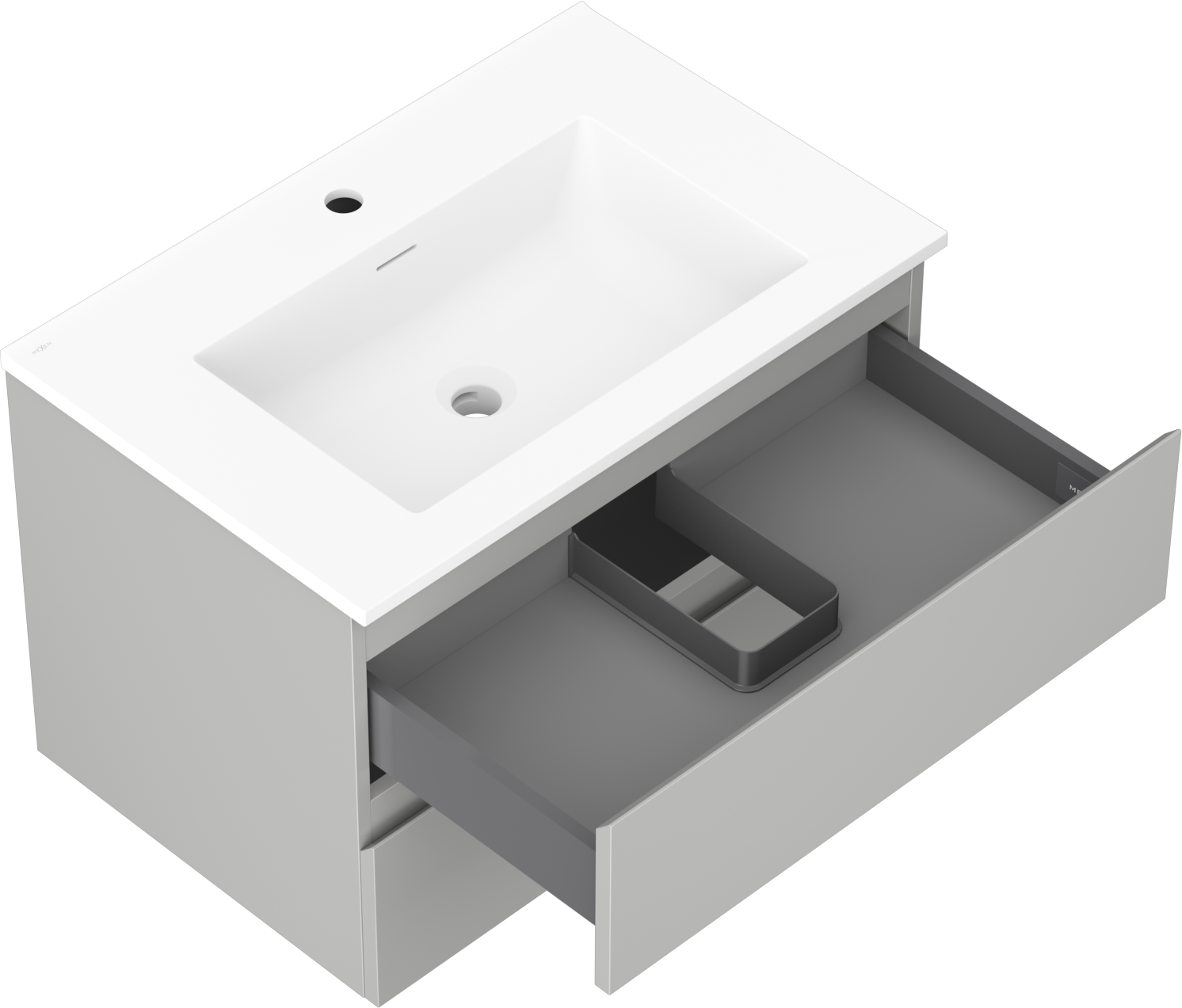 Mexen Orio 70 cm Badezimmerschrank mit Waschbecken Otis, 2 Schubladen, grau matt/weiß matt - 91A10-07047-2-BFF62-W18M01