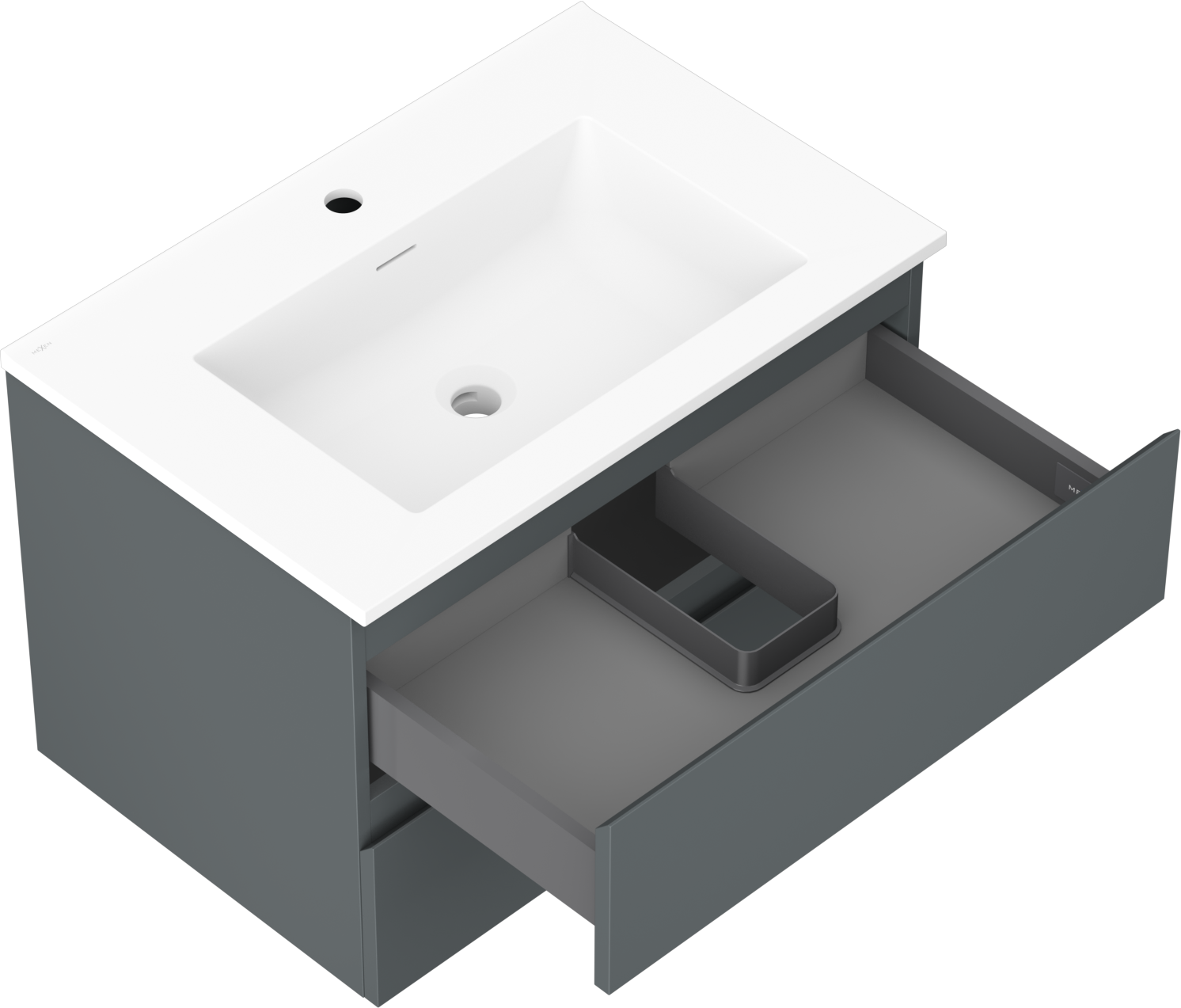 Mexen Orio Badezimmerschrank 70 cm mit Waschbecken Otis, 2 Schubladen, Graphit Matt/Weiß Matt - 91A10-07047-2-BFF66-W18M01