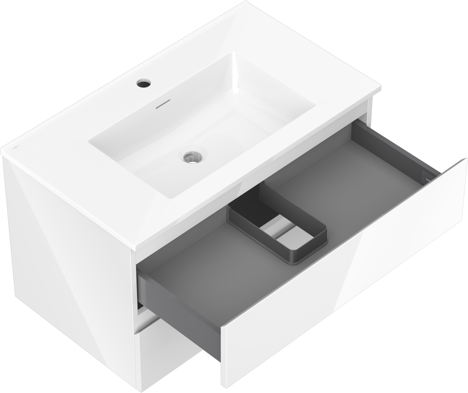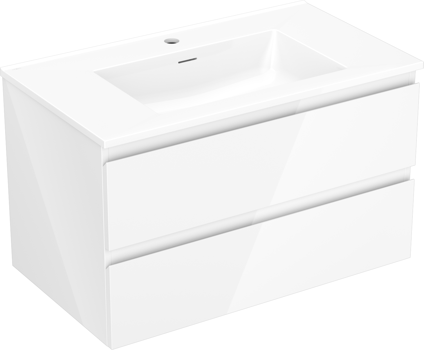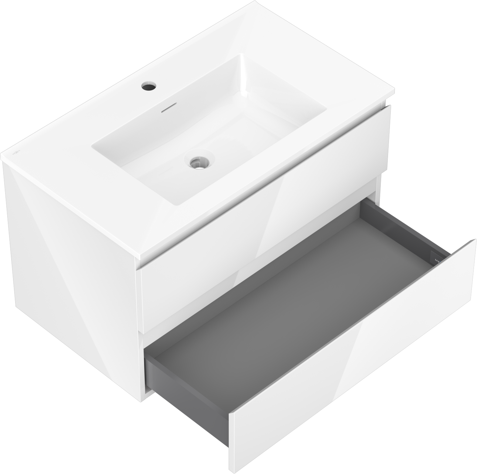 Mexen Orio Badezimmerschrank 80 cm mit Waschbecken Otis, 2 Schubladen, weiß glänzend - 91A10-08047-2-BFF00-W18M00