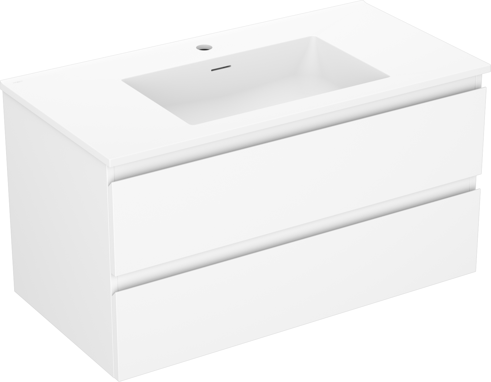Mexen Orio Badezimmerschrank 90 cm mit Waschbecken Otis, 2 Schubladen, weiß matt - 91A10-09047-2-BFF01-W18M01