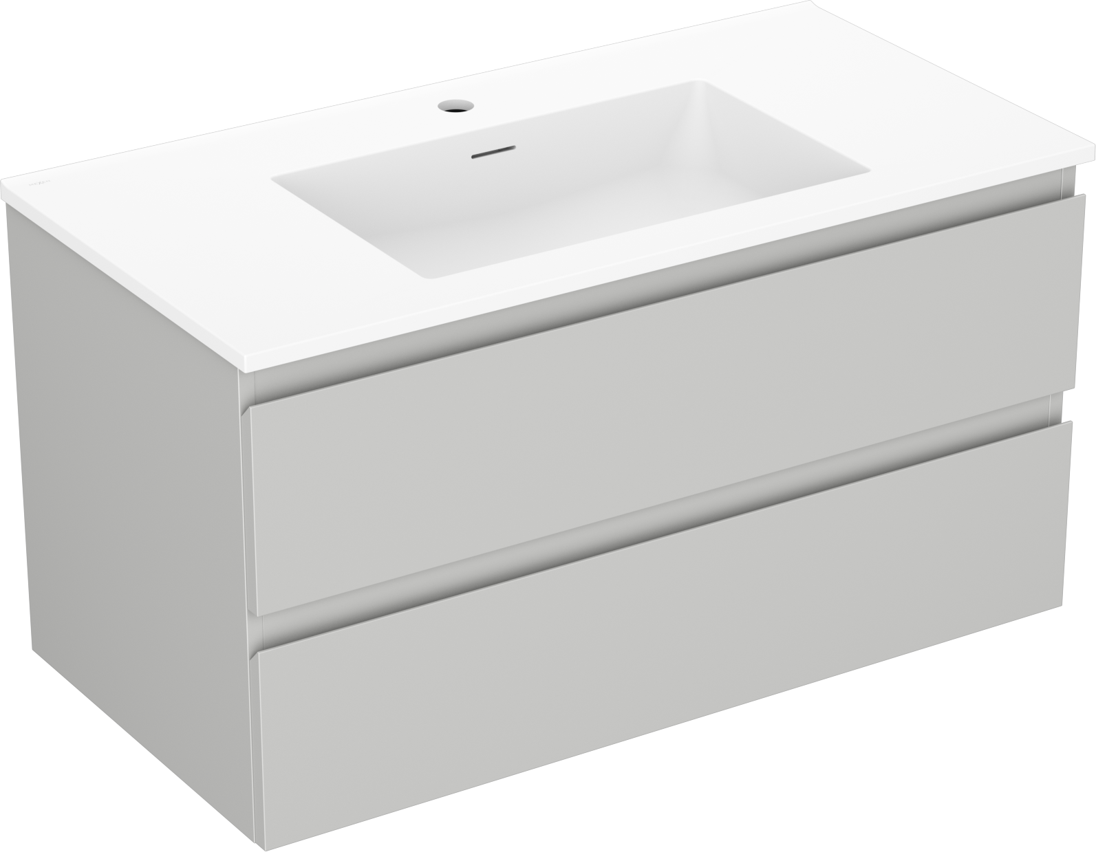 Mexen Orio Badezimmerschrank 90 cm mit Waschbecken Otis, 2 Schubladen, grau matt/weiß matt - 91A10-09047-2-BFF62-W18M01