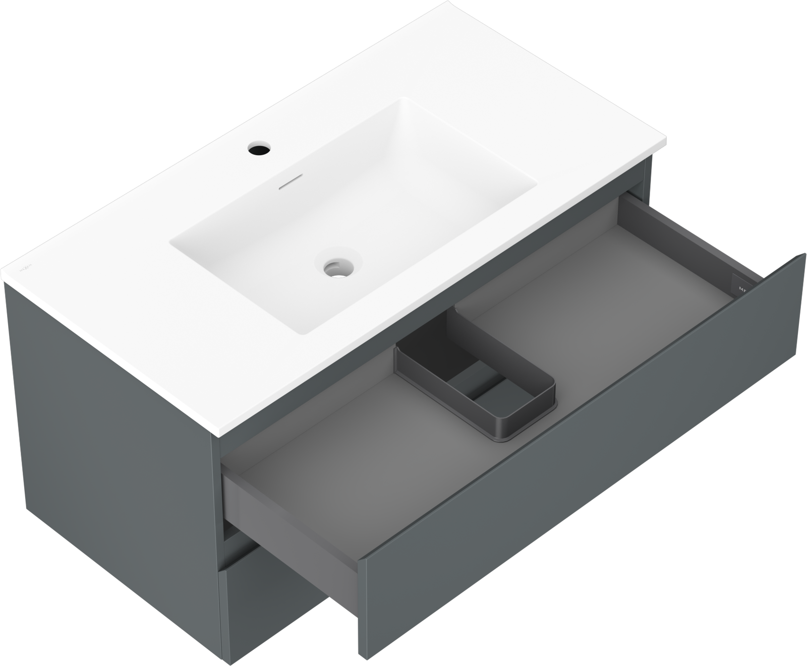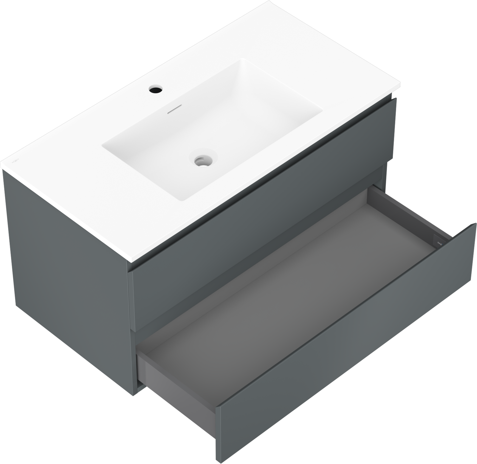 Mexen Orio 90 cm Badezimmerschrank mit Otis Waschbecken, 2 Schubladen, grafit matt/weiß matt - 91A10-09047-2-BFF66-W18M01