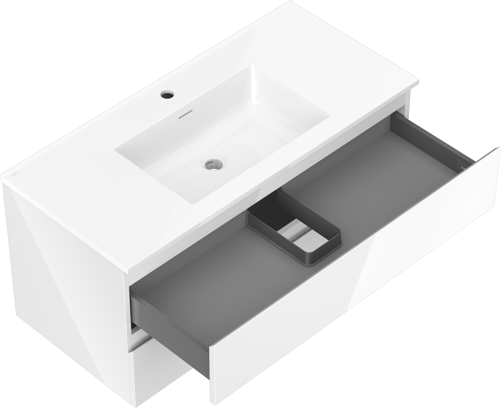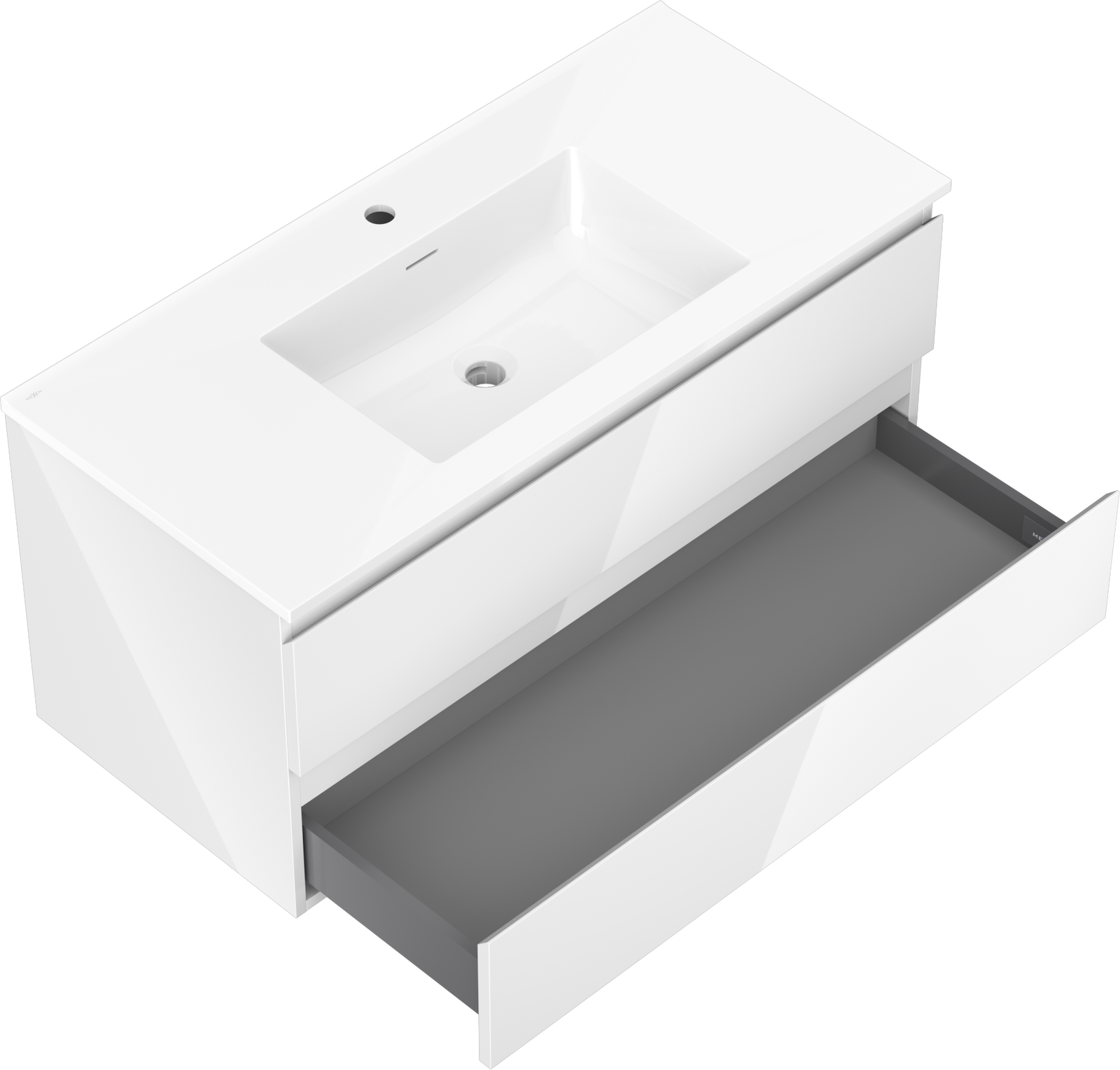 Mexen Orio 100 cm Badezimmerunterschrank mit Waschbecken Otis, 2 Schubladen, weiß glänzend - 91A10-10047-2-BFF00-W18M00