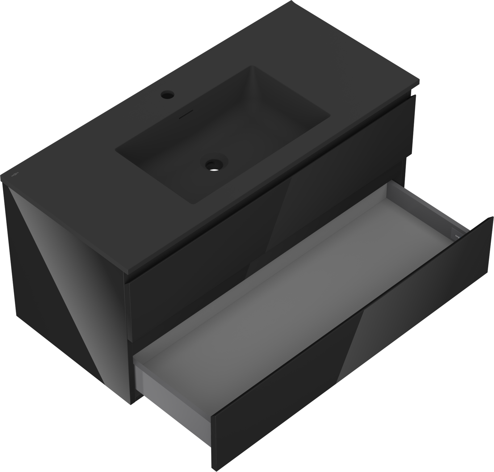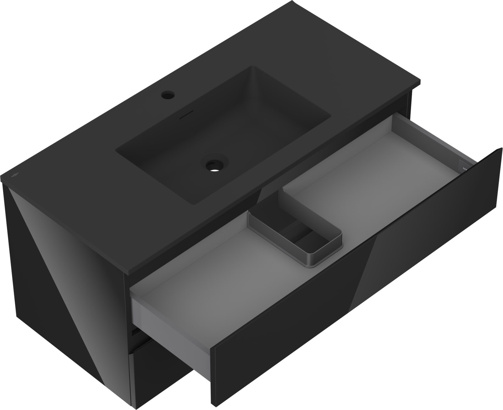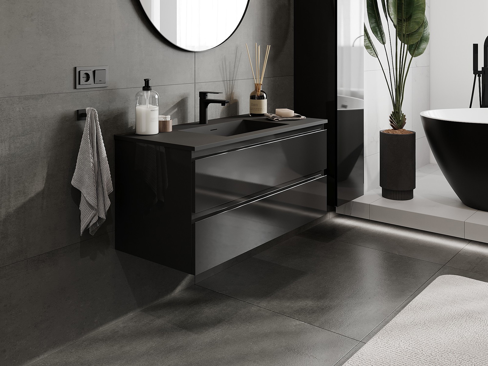 Mexen Orio Badezimmerschrank 100 cm mit Waschbecken Otis, 2 Schubladen, Schwarz Glanz/Schwarz Matt - 91A10-10047-2-BFF70-W18M71