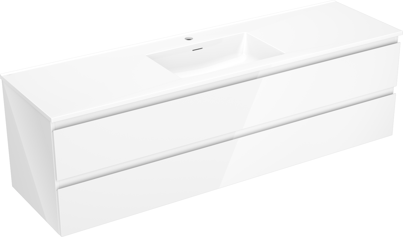 Mexen Orio Badschrank 160 cm mit Waschbecken Otis, 2 Schubladen, weiß glänzend - 91A10-16047-2-BFF00-W18M00