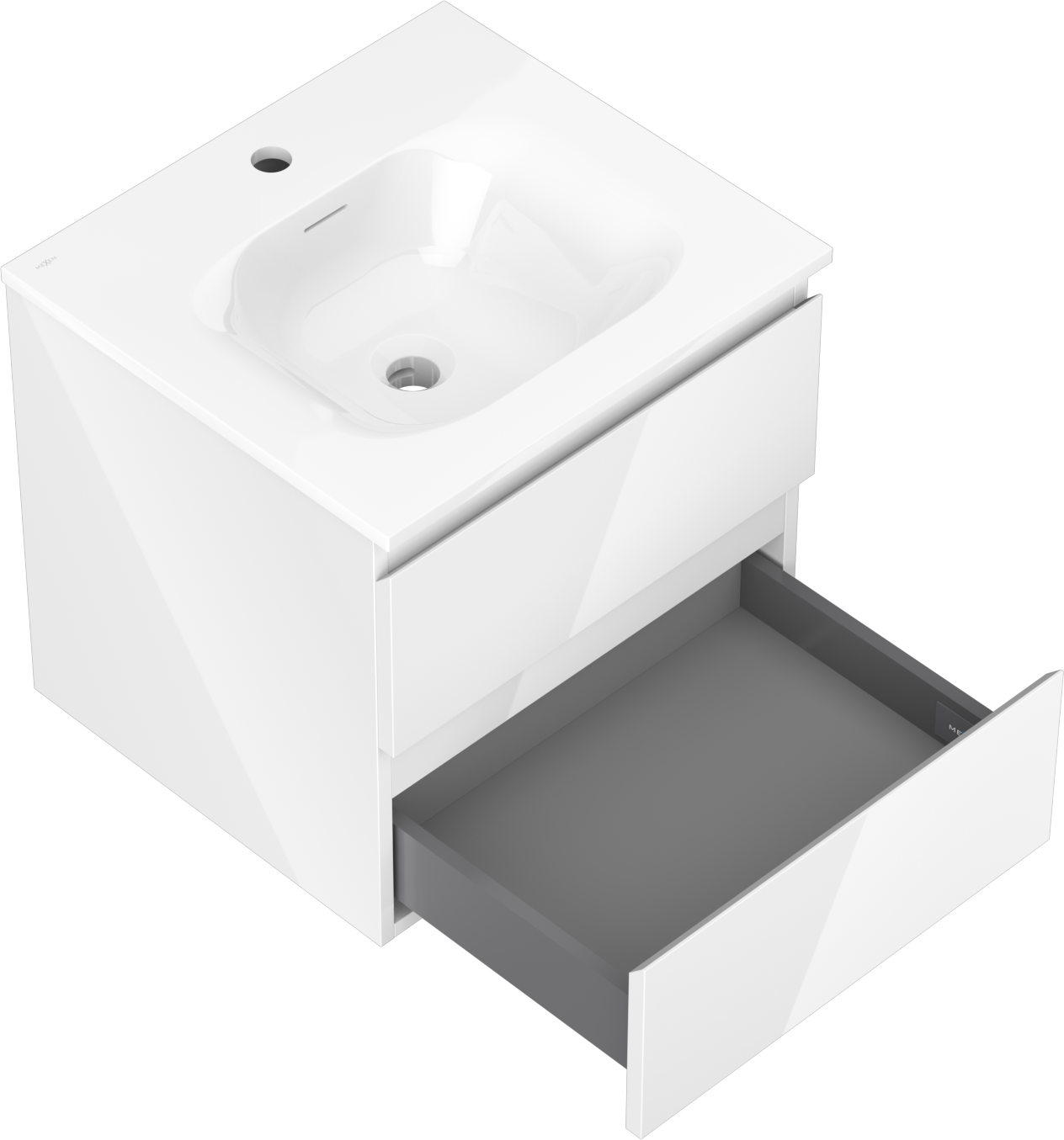 Der Ausschnitt in der Schublade ist so gestaltet, dass er den Siphon aufnehmen kann, der für Waschbeckeninstallationen erforderlich ist. Dadurch kann das Möbelstück voll funktionsfähig montiert werden, ohne auf den Platz in der Schublade zugunsten der Installation verzichten zu müssen.
