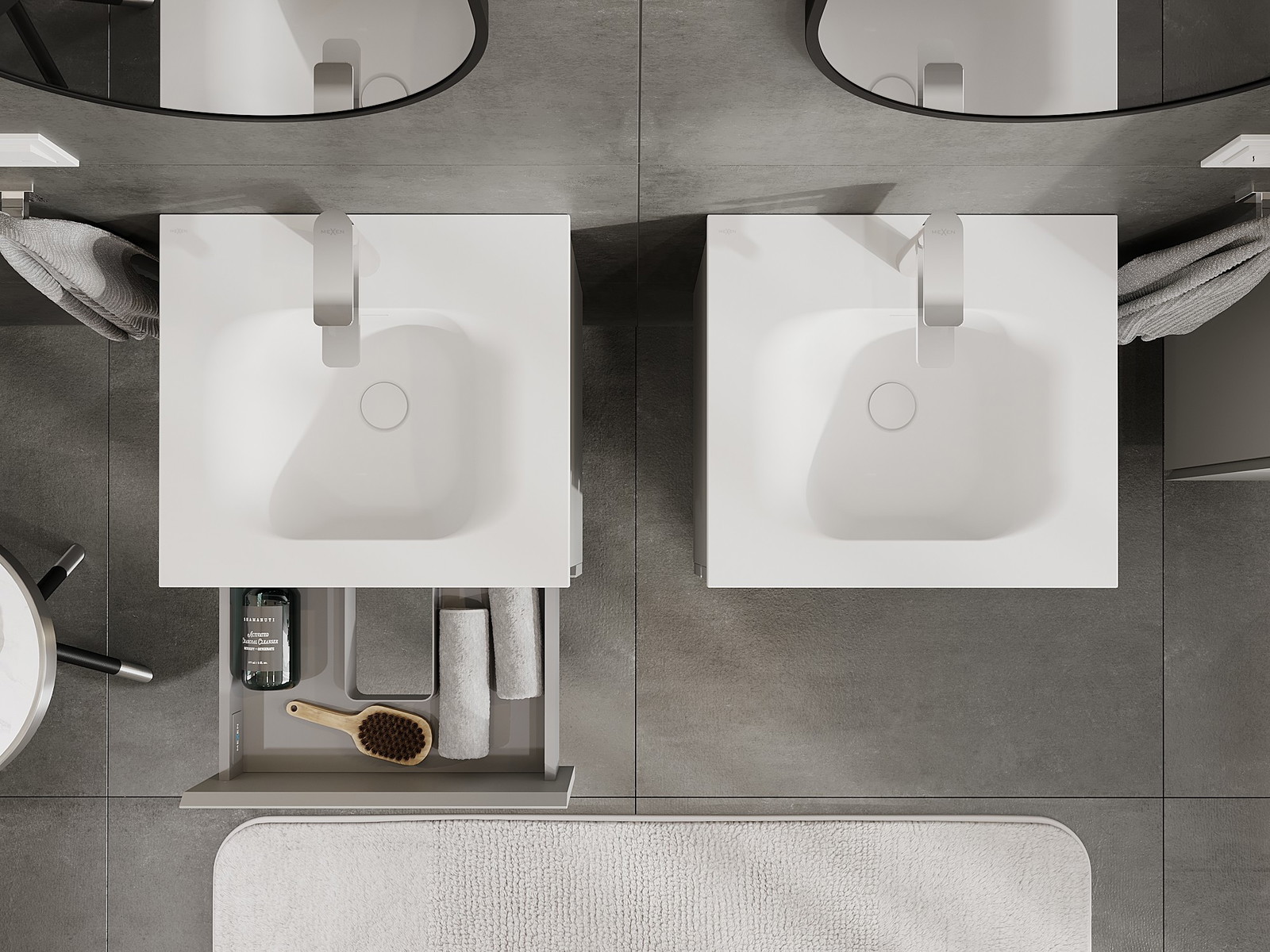 Unsere modularen Badezimmermöbel können in verschiedenen Farbkonfigurationen miteinander kombiniert werden, wodurch eine vollständige Personalisierung ermöglicht wird. Man kann sowohl das Aussehen als auch die Funktionen der einzelnen Elemente auswählen, was es erlaubt, die Möbel an eigene stilistische und funktionale Vorlieben anzupassen.