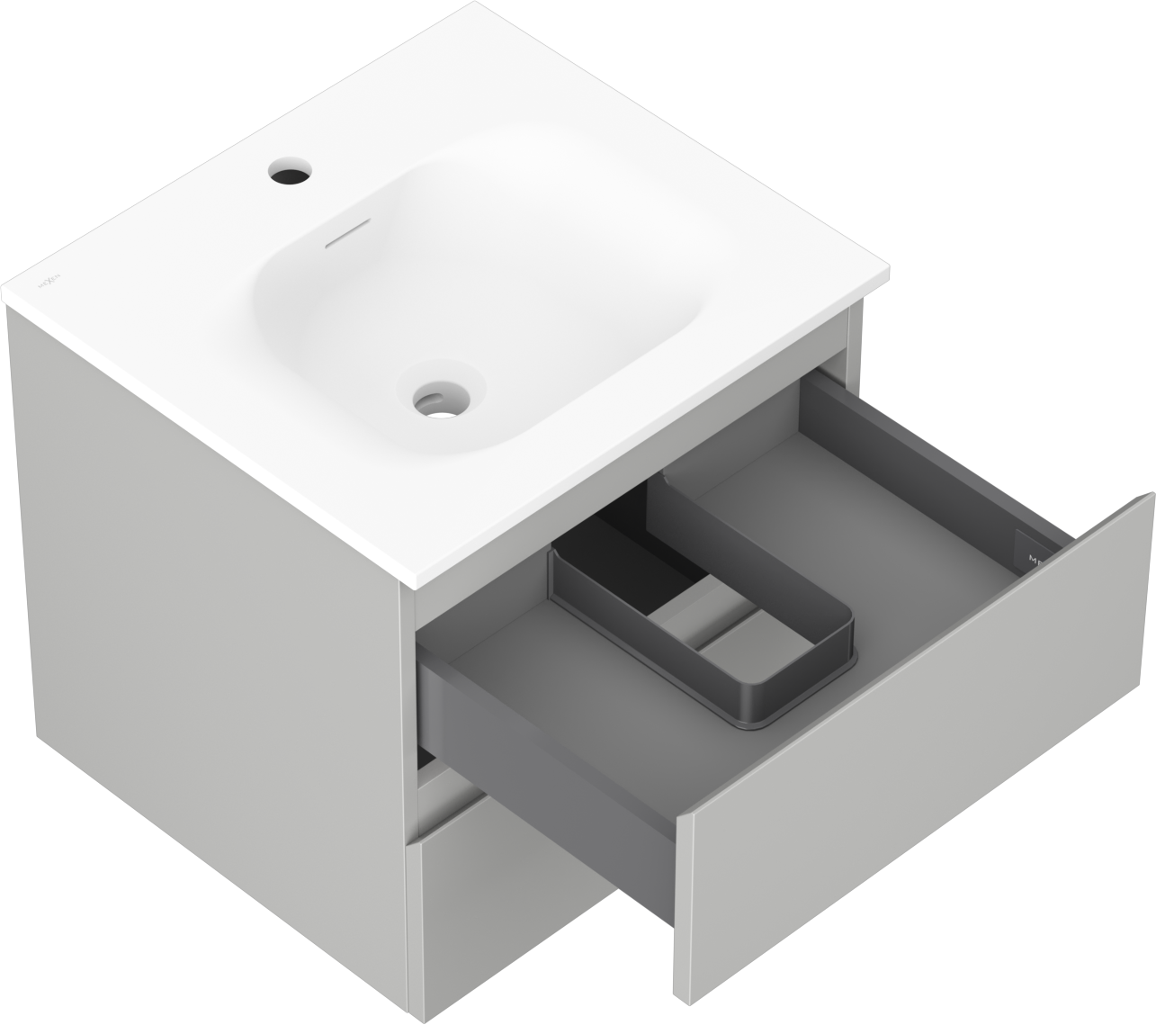 Mexen Orio Badezimmerunterschrank 50 cm mit Waschbecken Vela, 2 Schubladen, grau matt/weiß matt - 91A10-05047-2-BFF62-W23M01