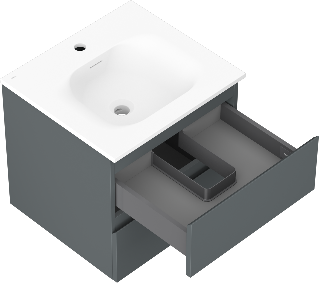 Mexen Orio Badezimmerunterschrank 50 cm mit Waschbecken Vela, 2 Schubladen, Graphit matt/Weiß matt - 91A10-05047-2-BFF66-W23M01