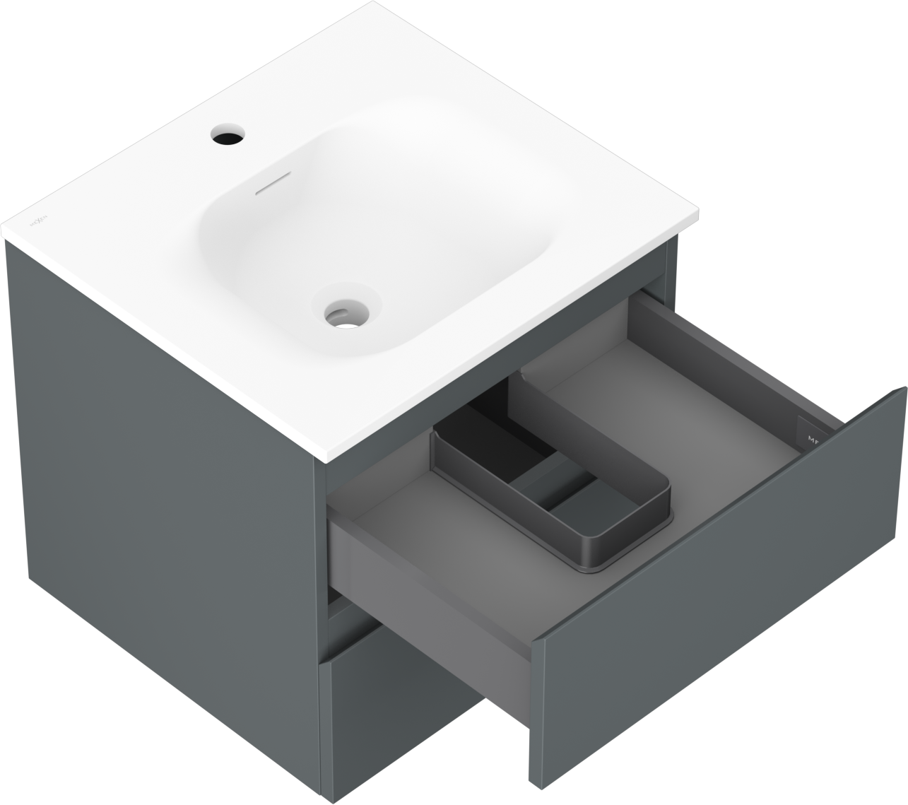 Mexen Orio Badschrank 50 cm mit Waschbecken Vela, 2 Schubladen, Graphit Matt/Weiß Matt - 91A10-05047-2-BFF66-W23M01