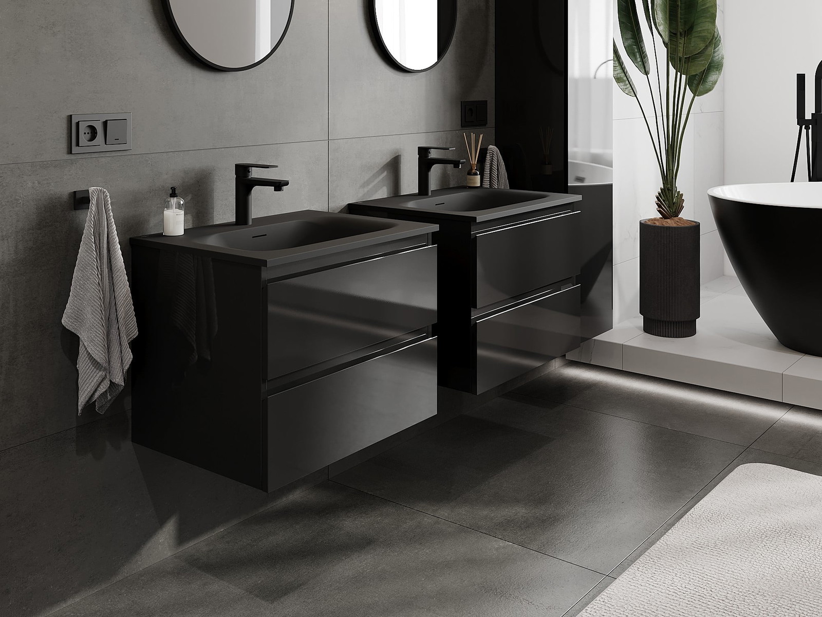 Unsere modularen Badezimmermöbel können in verschiedenen Farbkonfigurationen miteinander kombiniert werden, wodurch eine vollständige Personalisierung ermöglicht wird. Man kann sowohl das Aussehen als auch die Funktionen der einzelnen Elemente auswählen, was es erlaubt, die Möbel an eigene stilistische und funktionale Vorlieben anzupassen.