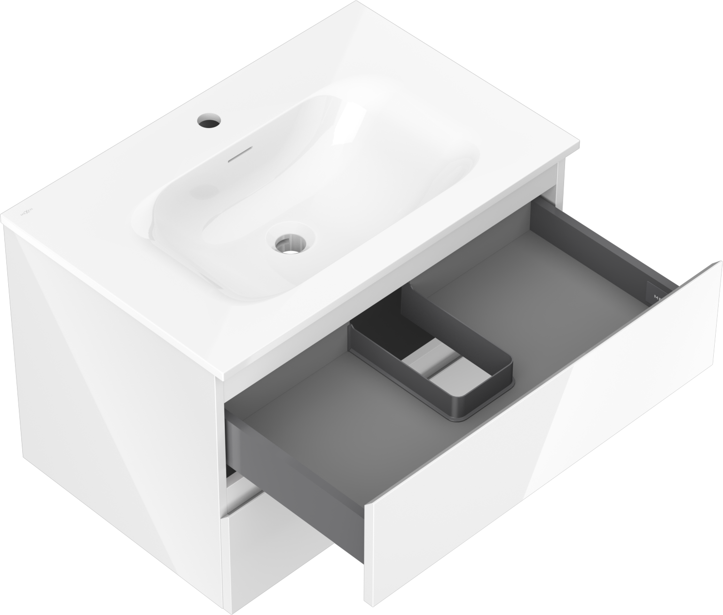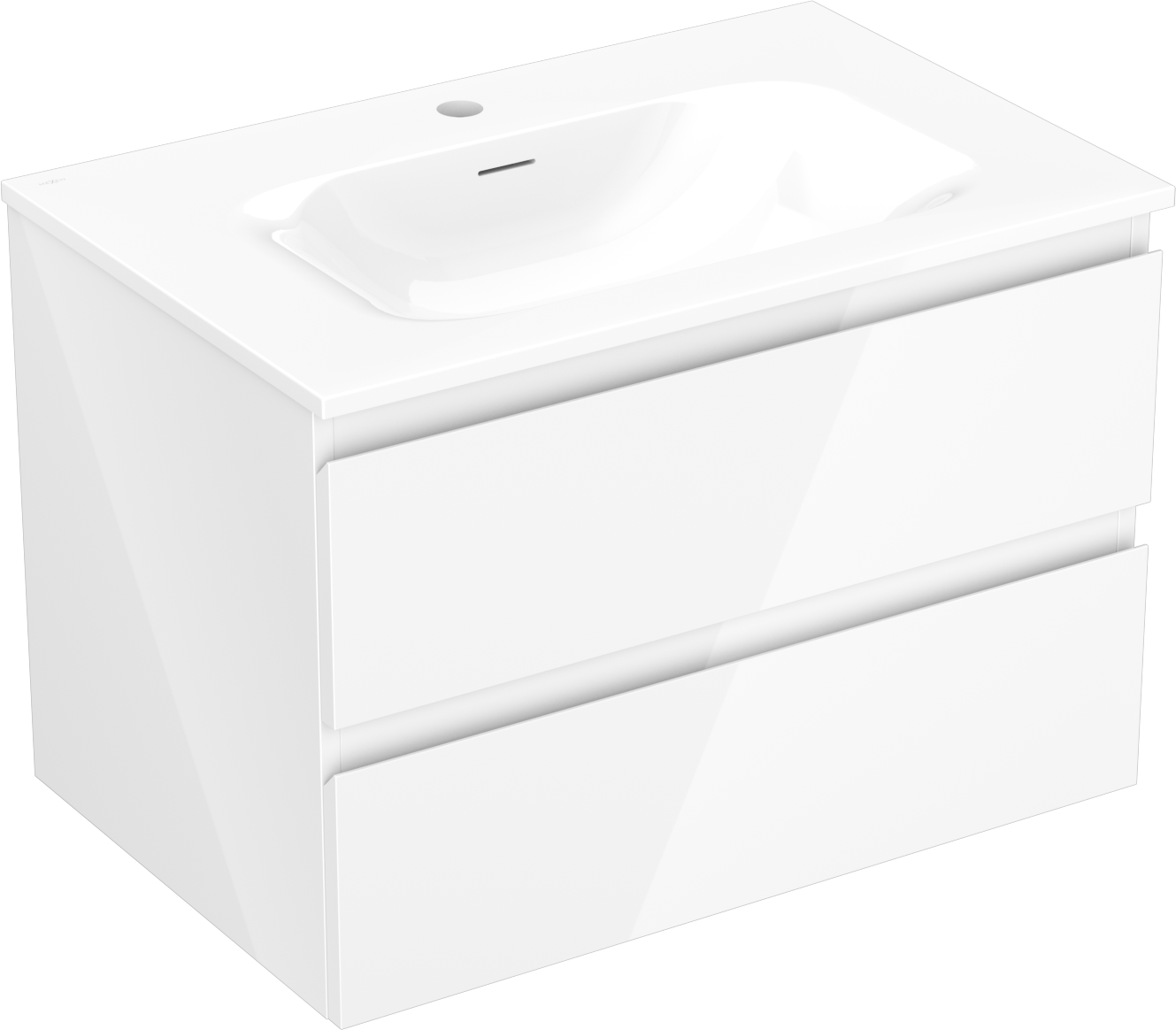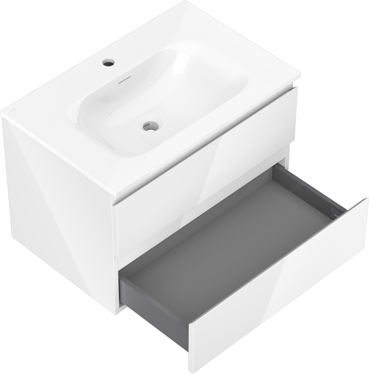 Mexen Orio Badezimmerschrank 70 cm mit Waschbecken Vela, 2 Schubladen, weiß glänzend - 91A10-07047-2-BFF00-W23M00