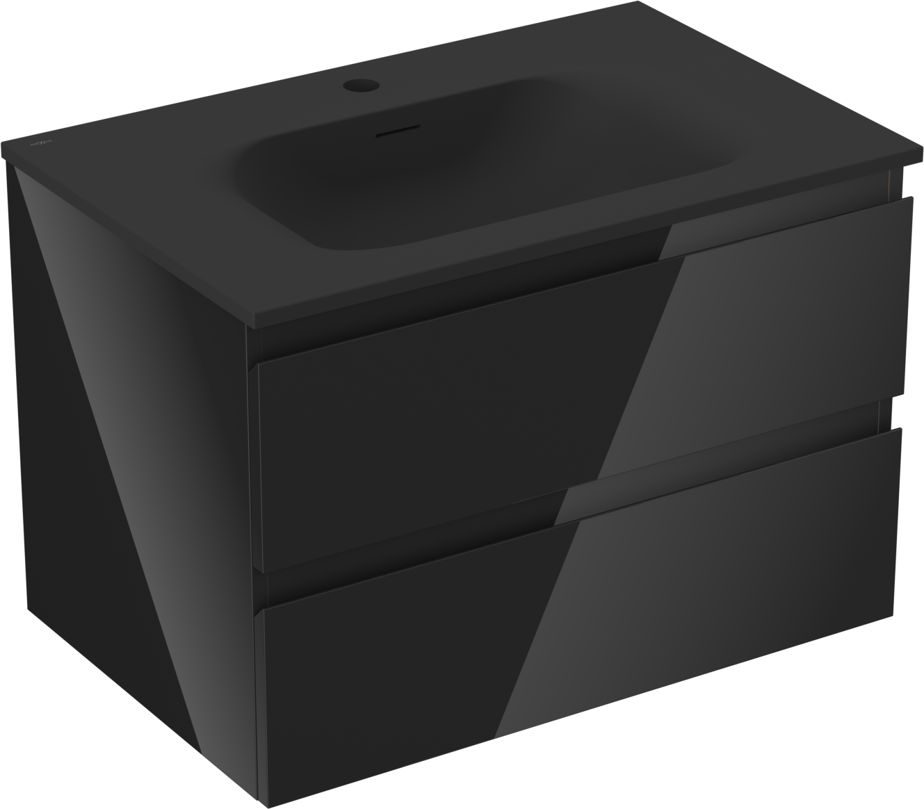Mexen Orio Badezimmermöbel 70 cm mit Waschbecken Vela, 2 Schubladen, Schwarz glänzend/Schwarz matt - 91A10-07047-2-BFF70-W23M71