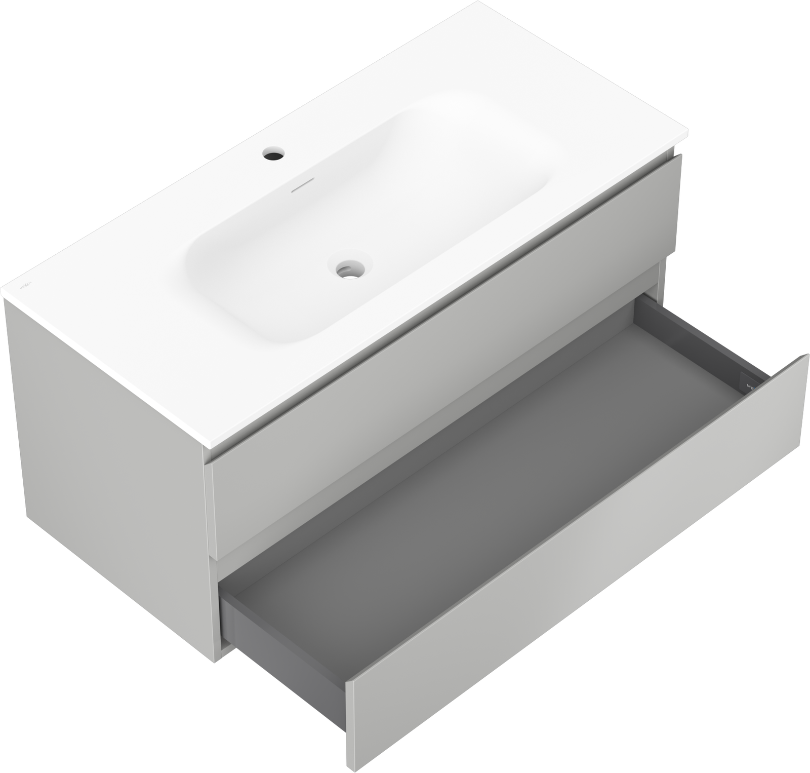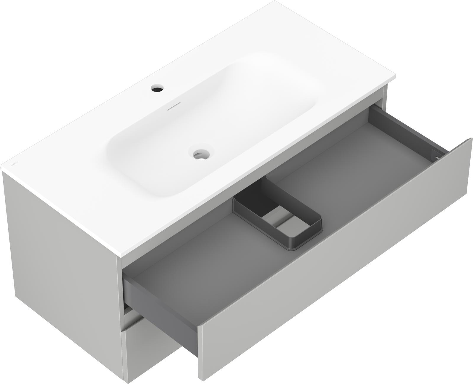 Mexen Orio Badezimmerschrank 100 cm mit Waschbecken Vela, 2 Schubladen, grau matt/weiß matt - 91A10-10047-2-BFF62-W23M01