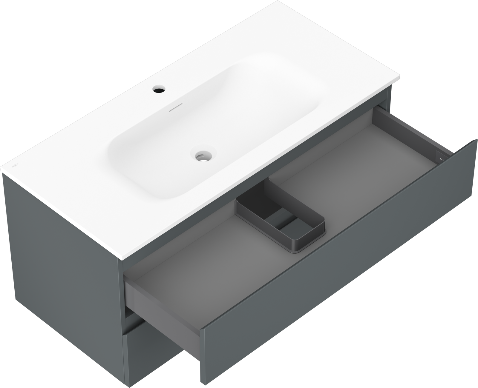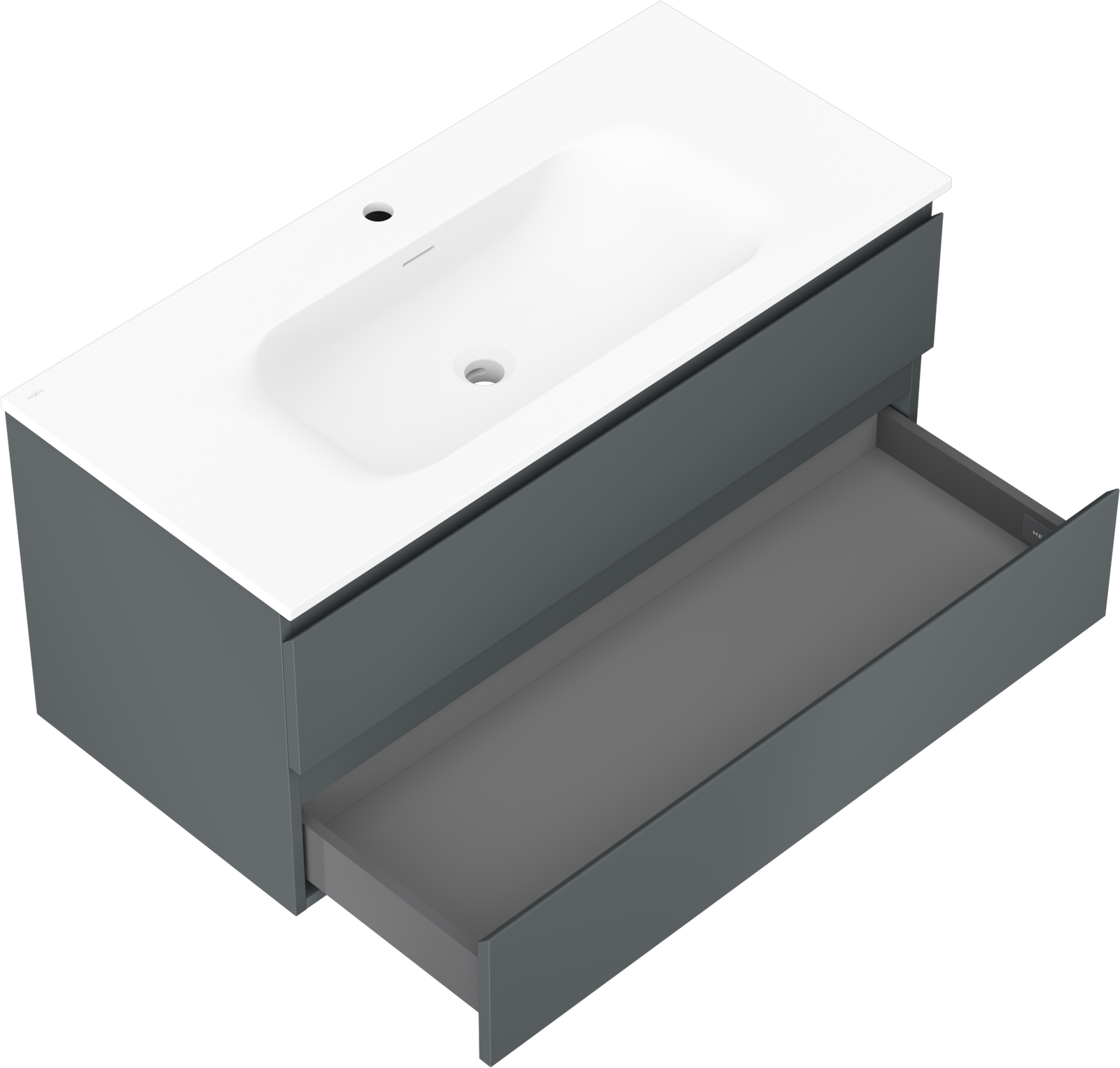 Mexen Orio Badezimmerschrank 100 cm mit Waschbecken Vela, 2 Schubladen, grafit matt/weiß matt - 91A10-10047-2-BFF66-W23M01