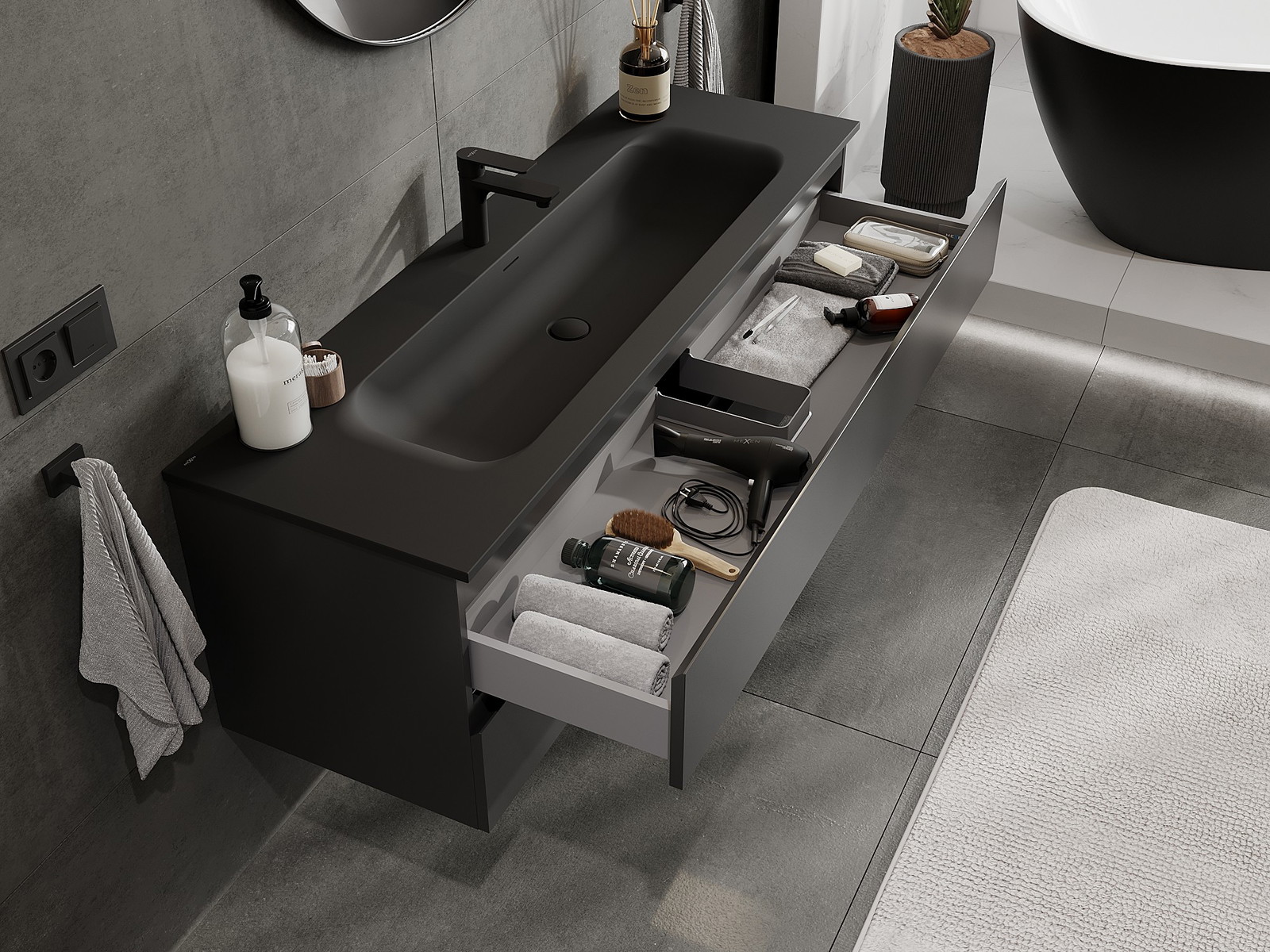 Farbe des Waschbeckens: Schwarz matt