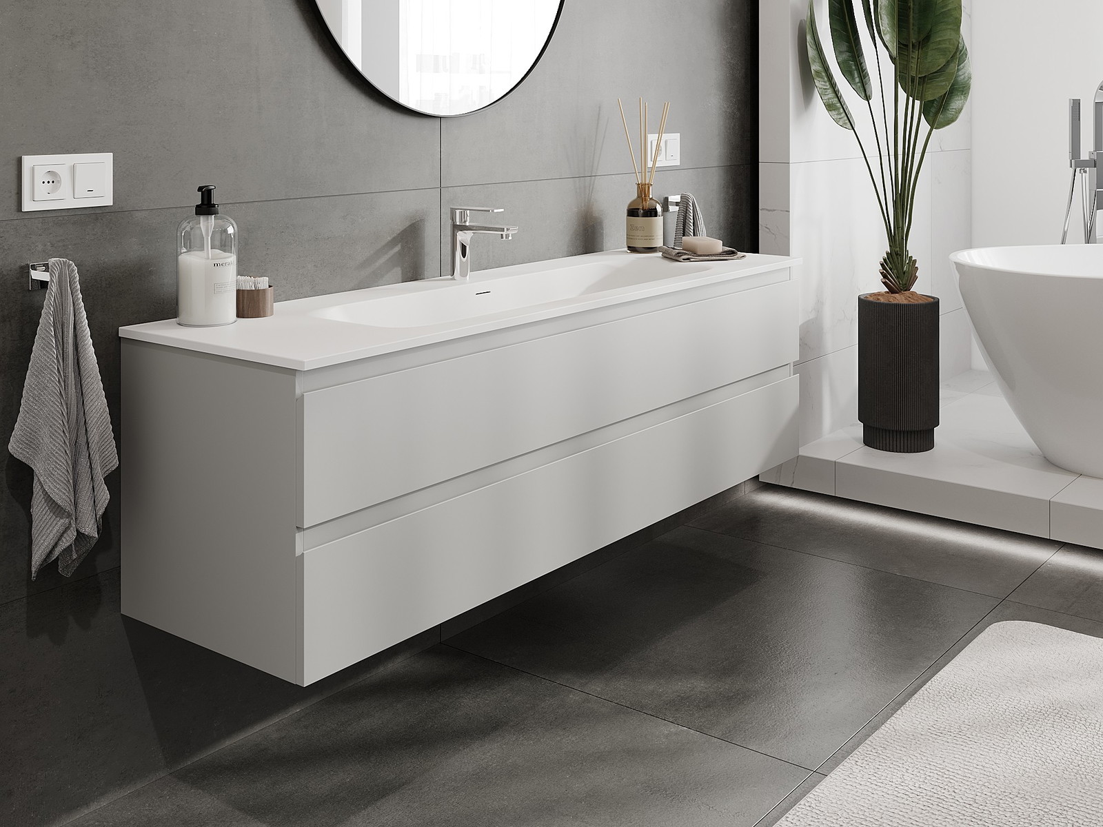 Unsere modularen Badezimmermöbel können in verschiedenen Farbkonfigurationen miteinander kombiniert werden, wodurch eine vollständige Personalisierung ermöglicht wird. Man kann sowohl das Aussehen als auch die Funktionen der einzelnen Elemente auswählen, was es erlaubt, die Möbel an eigene stilistische und funktionale Vorlieben anzupassen.