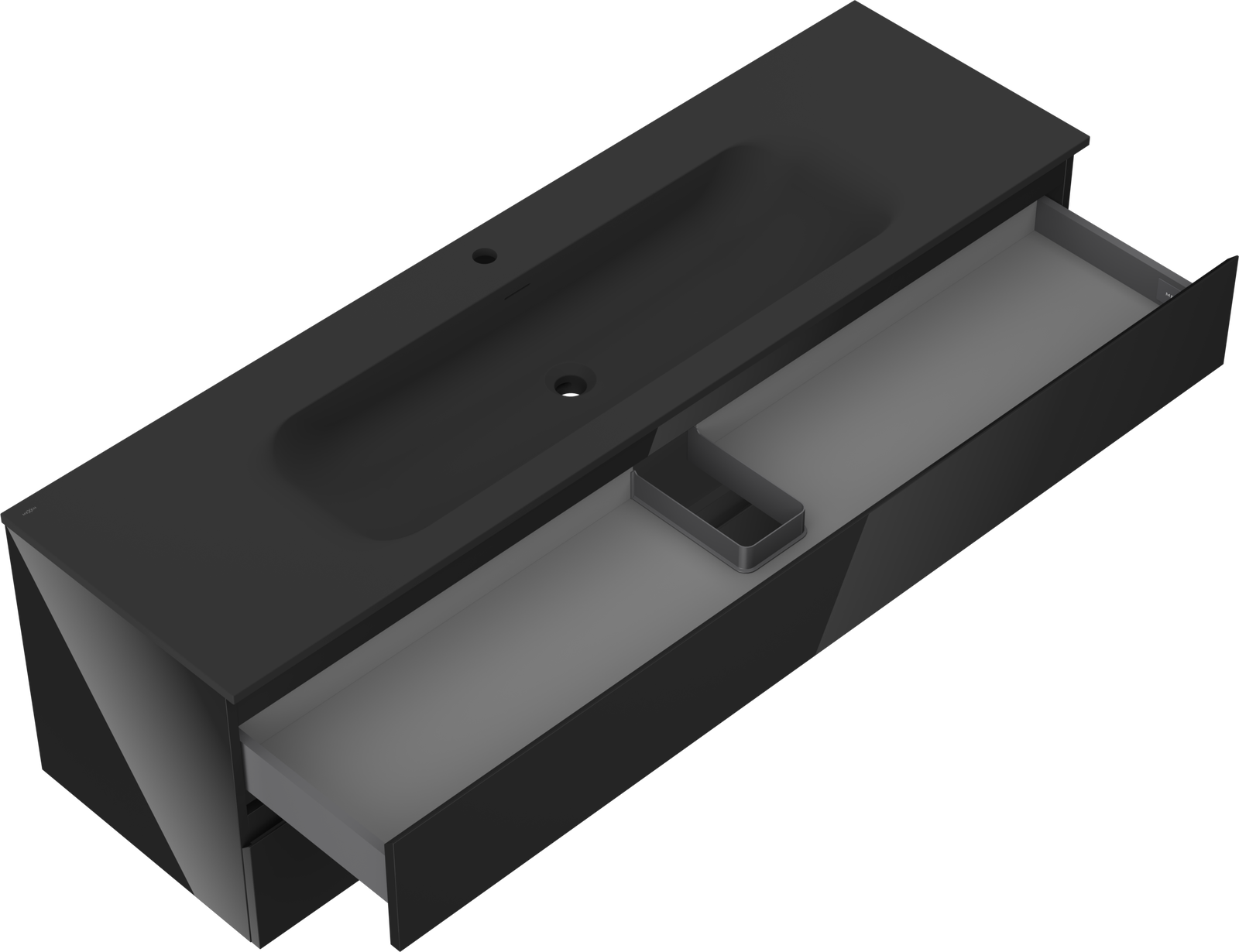 Mexen Orio Badezimmerschrank 160 cm mit Waschbecken Vela, 2 Schubladen, Schwarz Glanz/Schwarz Matt - 91A10-16047-2-BFF70-W23M71