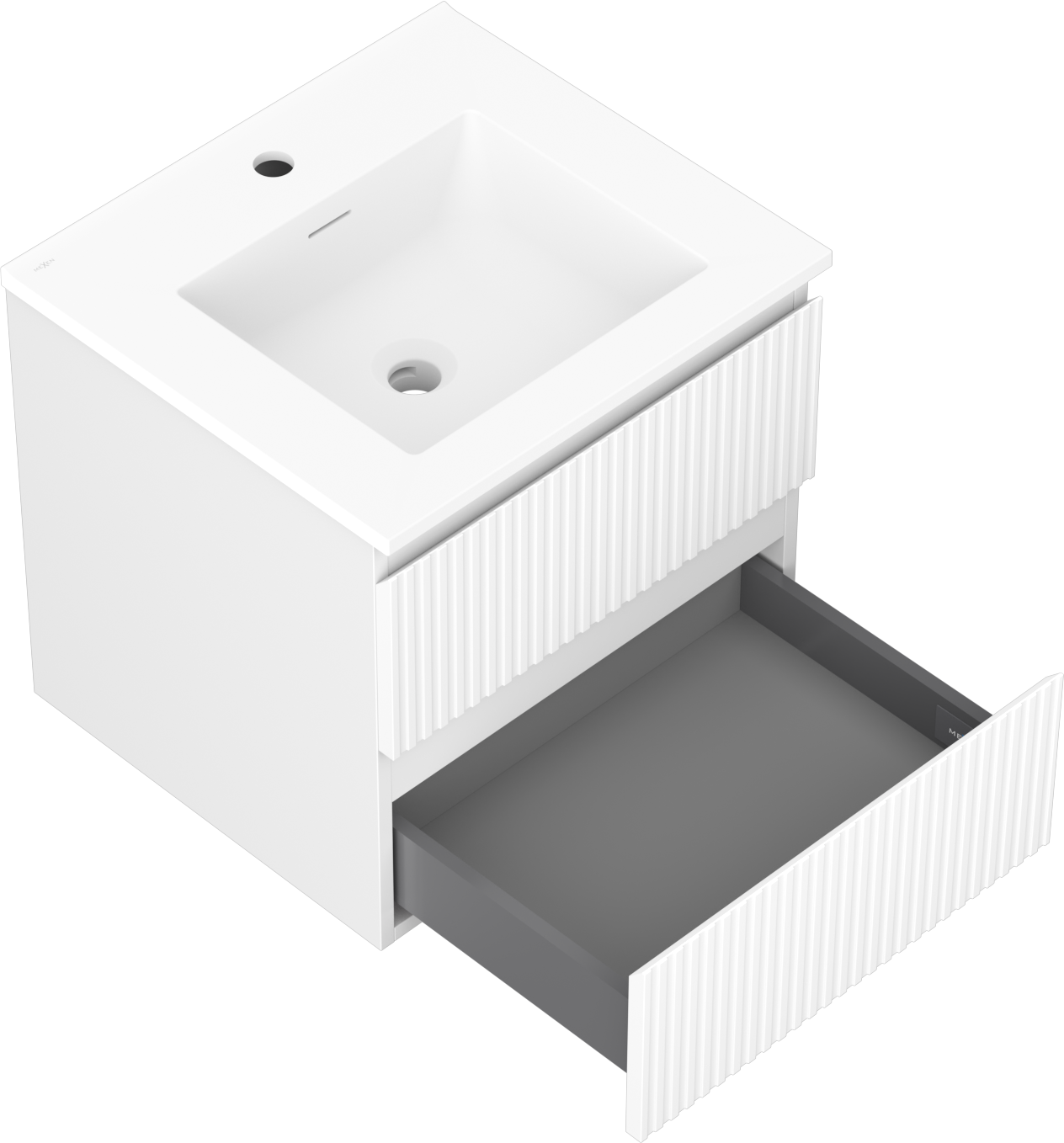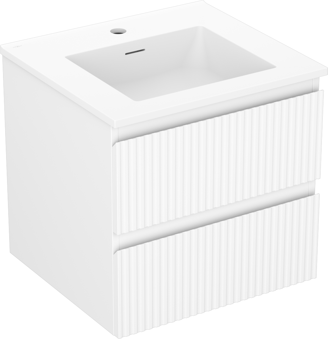Mexen Rivel Badezimmerschrank 50 cm mit Waschbecken Otis, 2 Schubladen, lamellenförmig, weiß matt - 91A20-05047-2-BFF01-W18M01