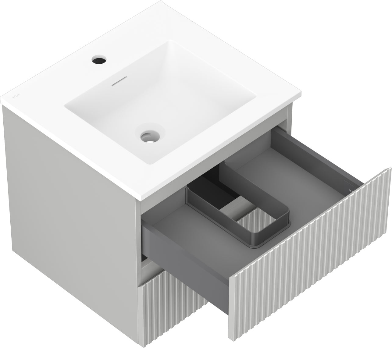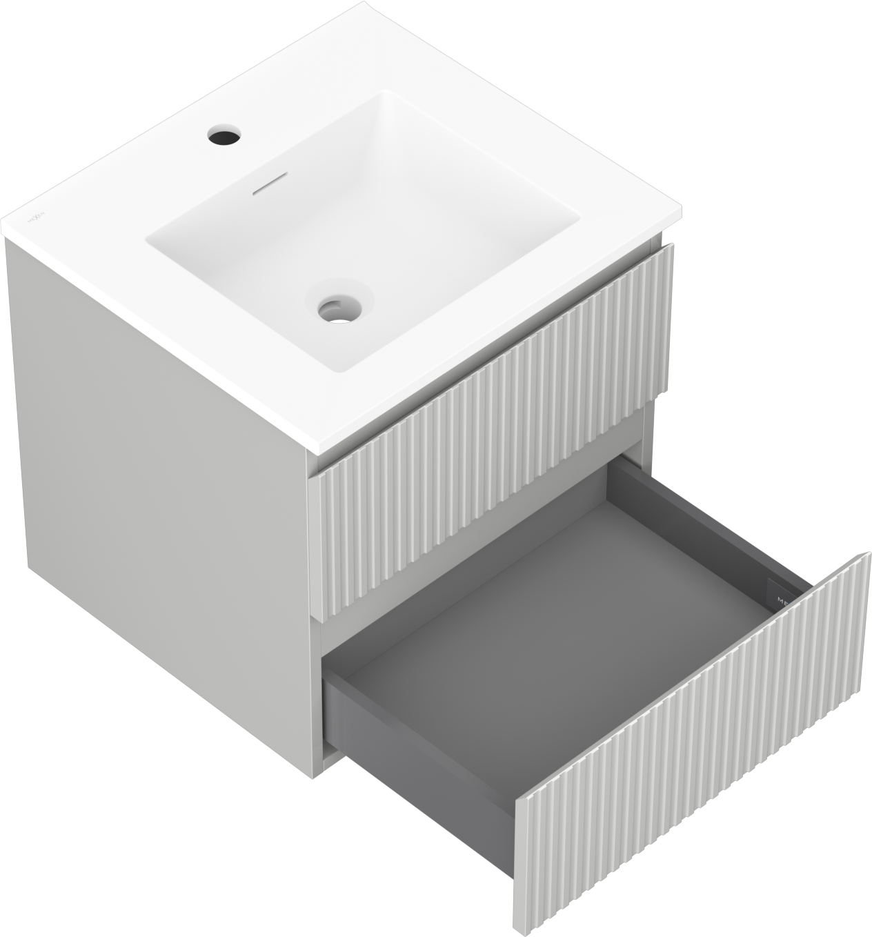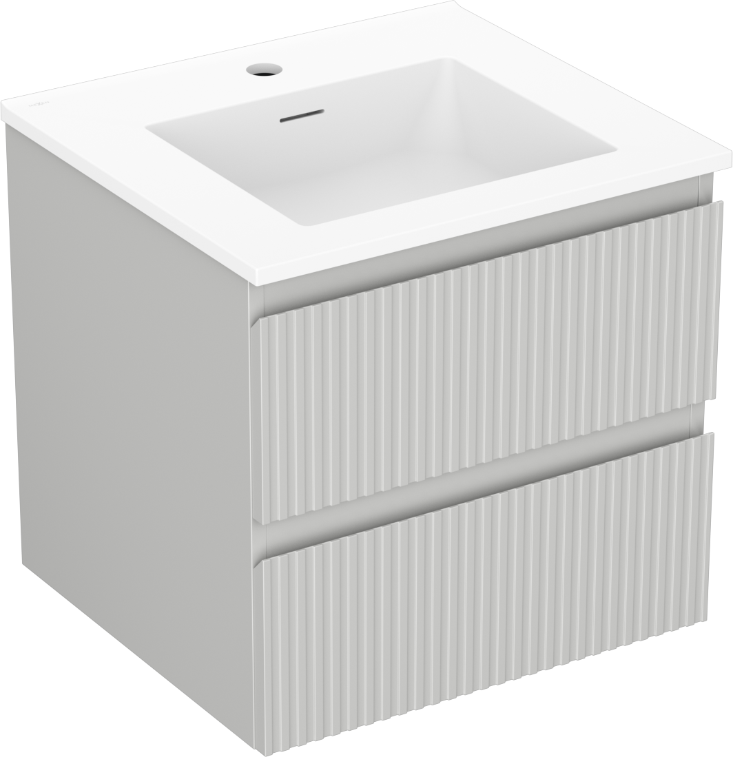 Mexen Rivel Badezimmerschrank 50 cm mit Waschbecken Otis, 2 Schubladen, geriffelt, grau matt/weiß matt