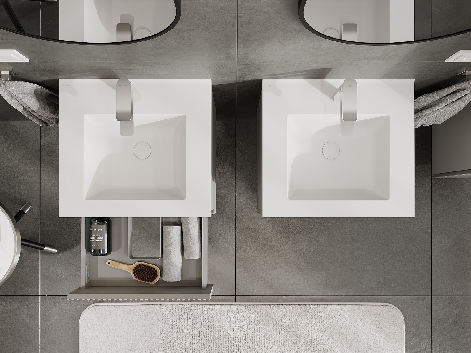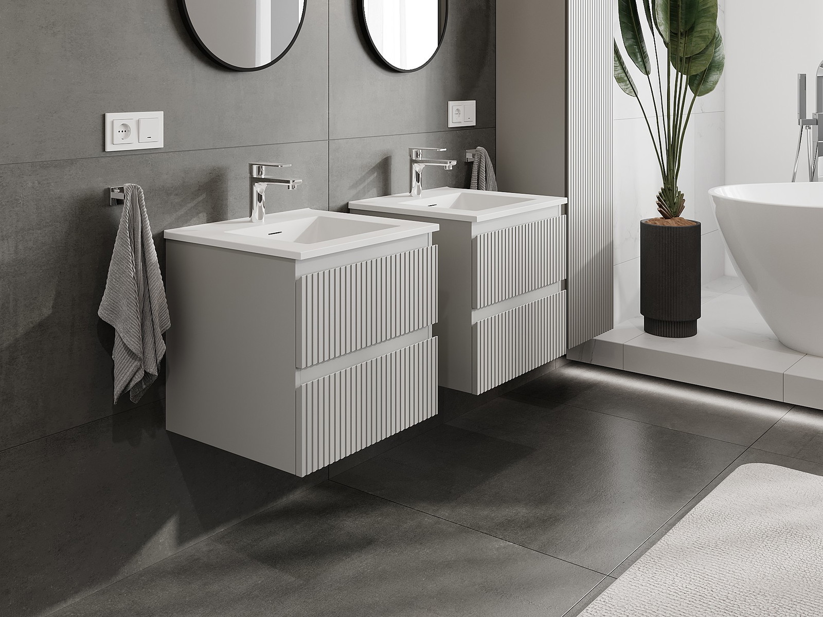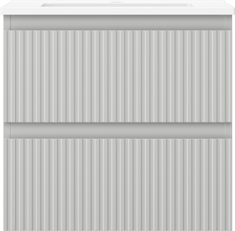 Mexen Rivel Badezimmerschrank 50 cm mit Waschbecken Otis, 2 Schubladen, geriffelt, grau matt/weiß matt