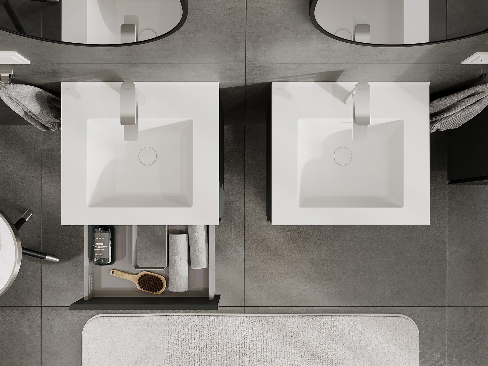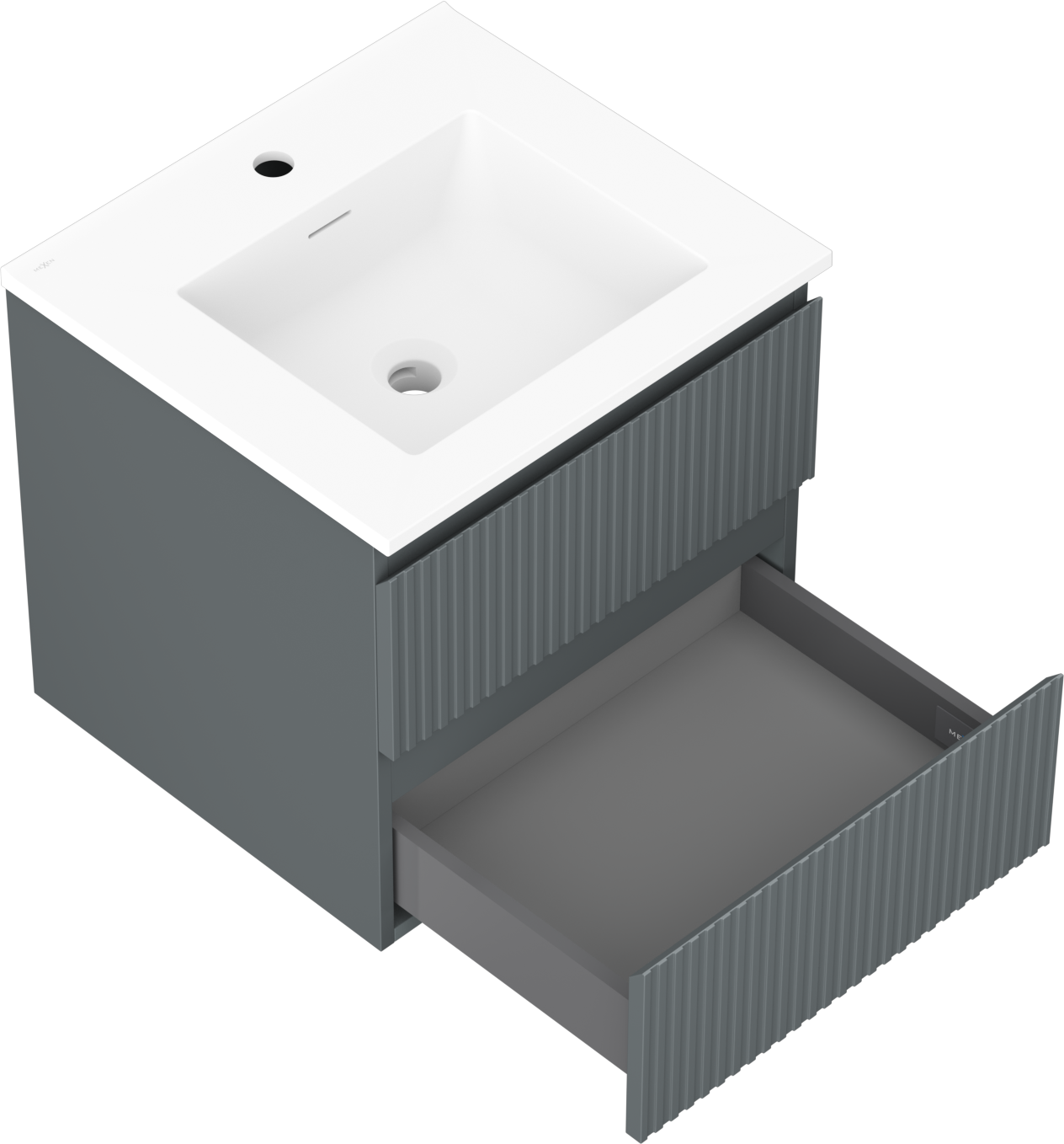Mexen Rivel Badezimmerschrank 50 cm mit Waschbecken Otis, 2 Schubladen, geriffelt, Graphit matt/Weiß matt