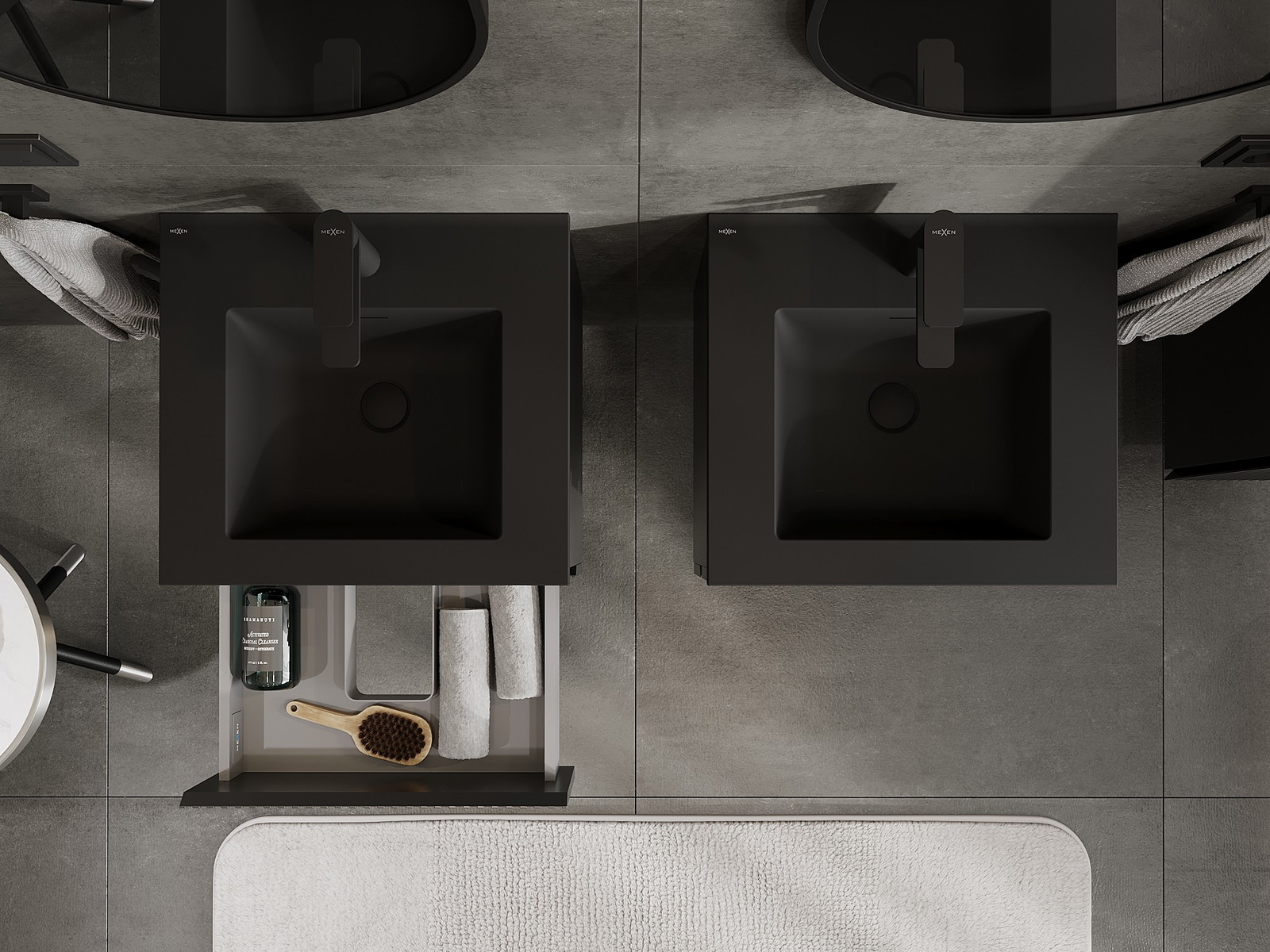 Mexen Rivel Badezimmerschrank 50 cm mit Waschbecken Otis, 2 Schubladen, gerippt, schwarz matt - 91A20-05047-2-BFF71-W18M71