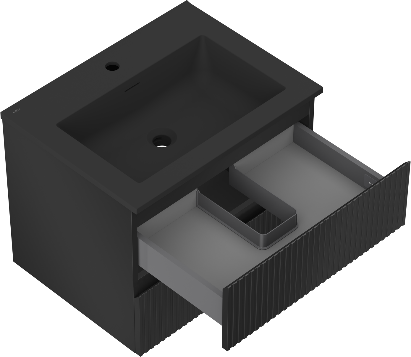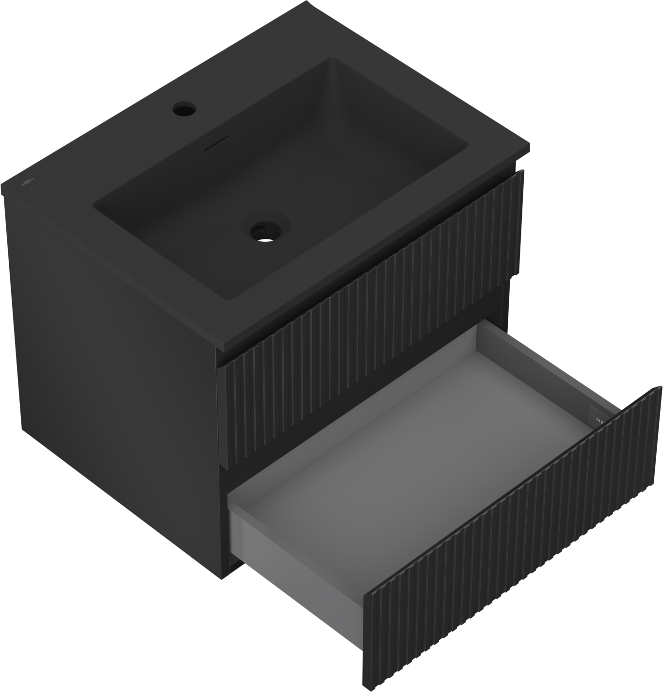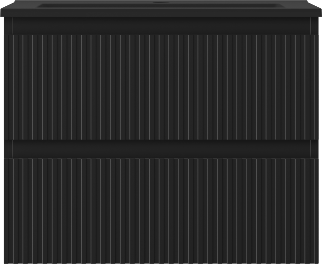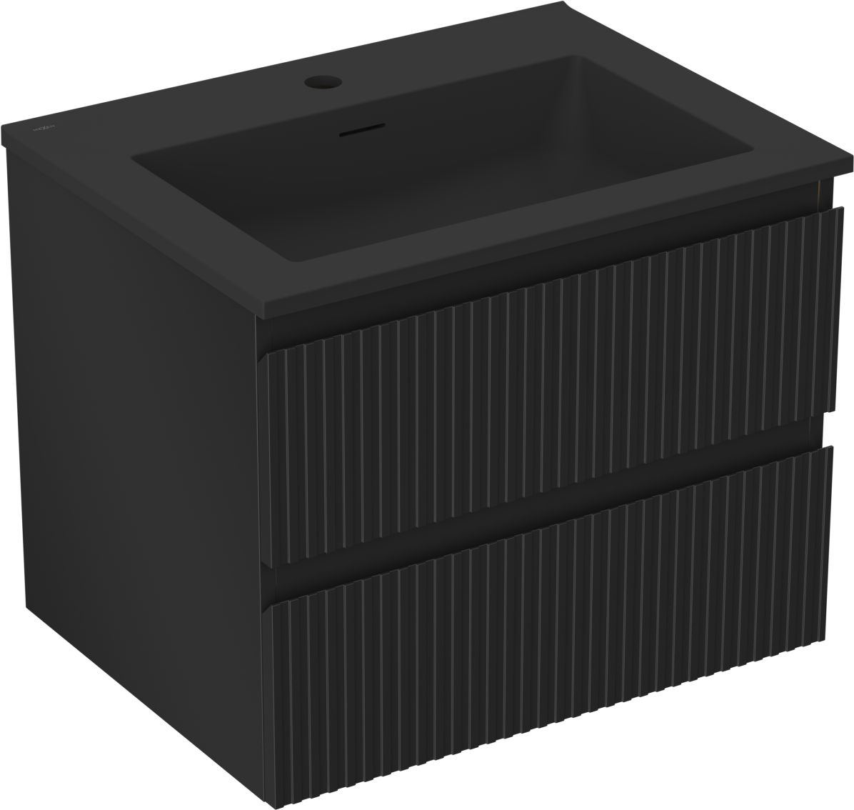 Mexen Rivel Badezimmerschrank 60 cm mit Waschbecken Otis, 2 Schubladen, gerillt, schwarz matt - 91A20-06047-2-BFF71-W18M71