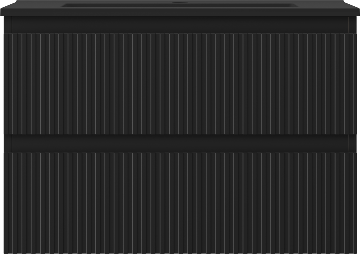 Mexen Rivel Badezimmerschrank 70 cm mit Waschbecken Otis, 2 Schubladen, geriffelt, schwarz matt - 91A20-07047-2-BFF71-W18M71