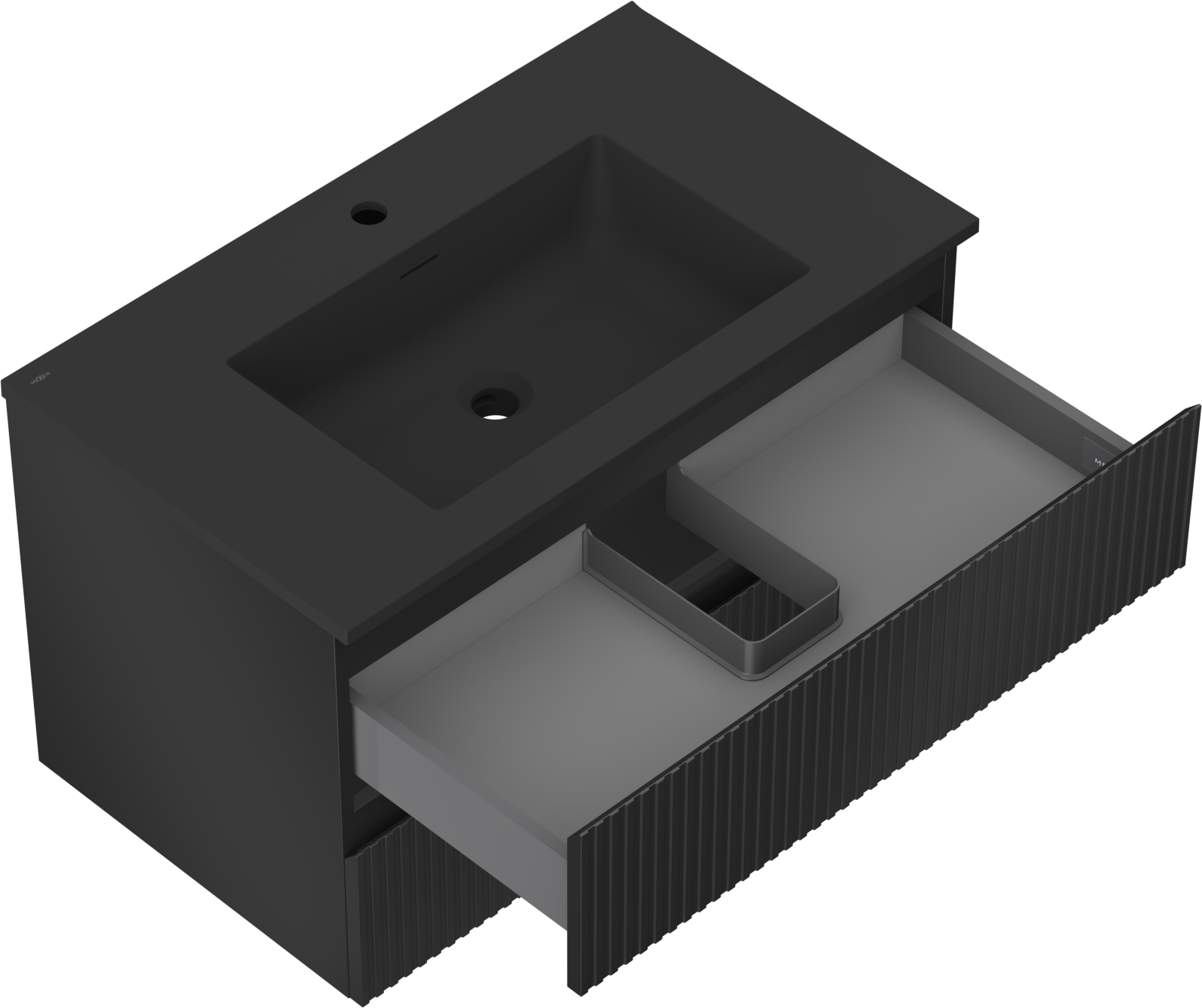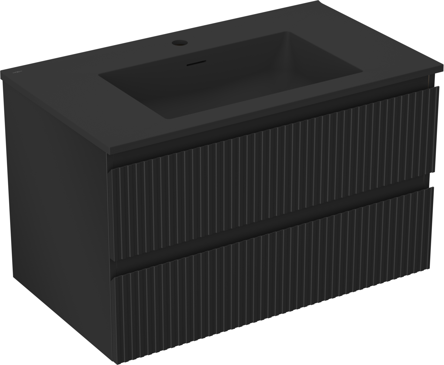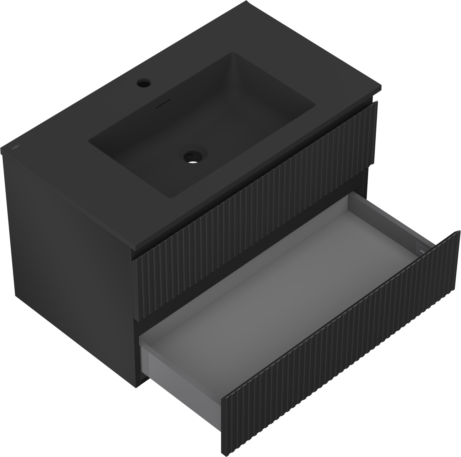 Mexen Rivel Badezimmerschrank 80 cm mit Waschbecken Otis, 2 Schubladen, geriffelt, schwarz matt - 91A20-08047-2-BFF71-W18M71
