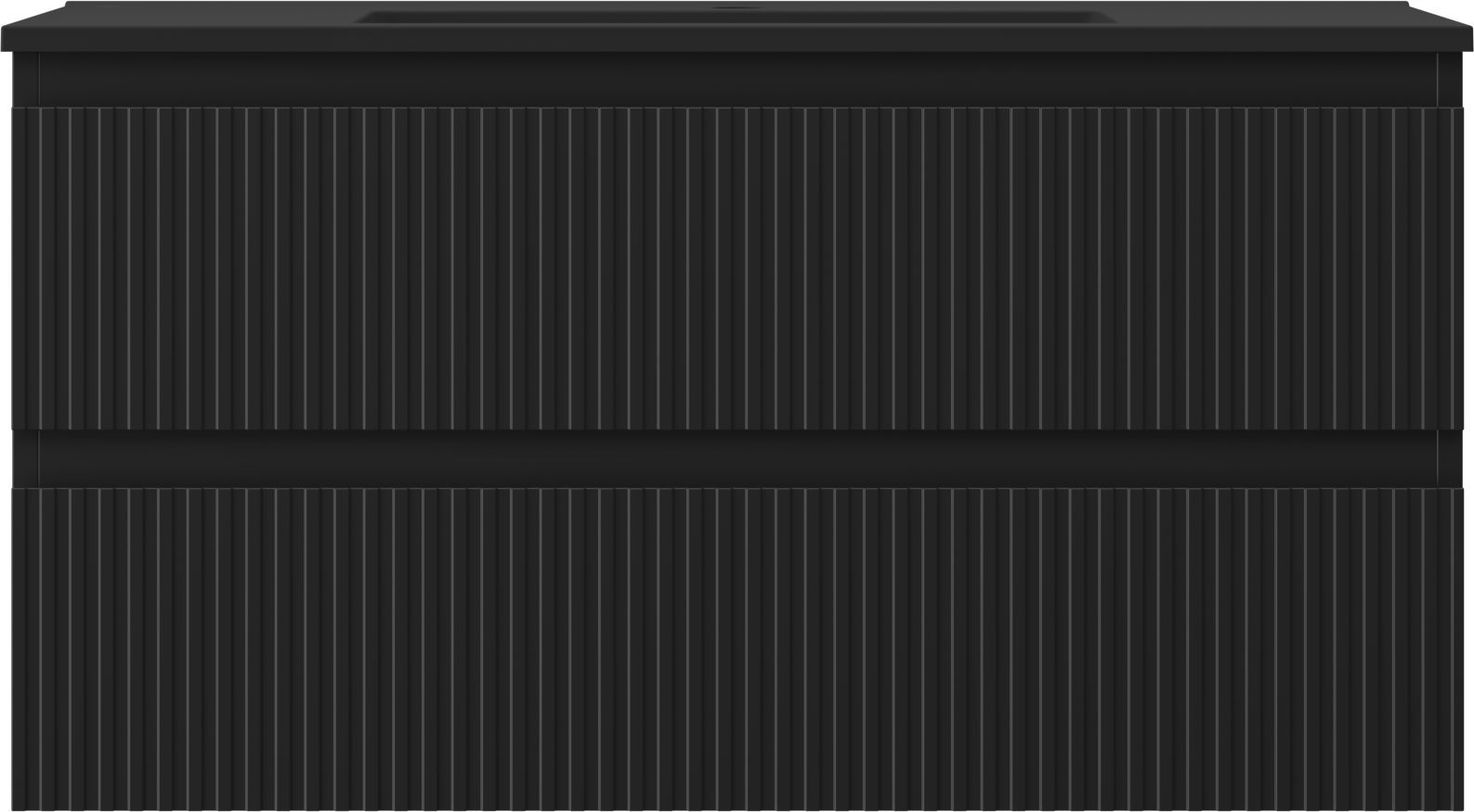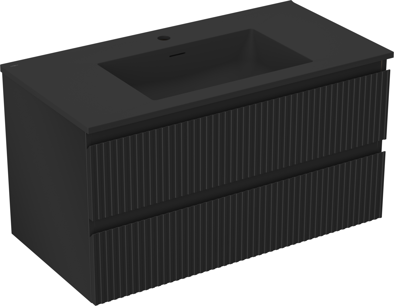 Mexen Rivel Badezimmerschrank 90 cm mit Waschbecken Otis, 2 Schubladen, geriffelt, schwarz matt - 91A20-09047-2-BFF71-W18M71